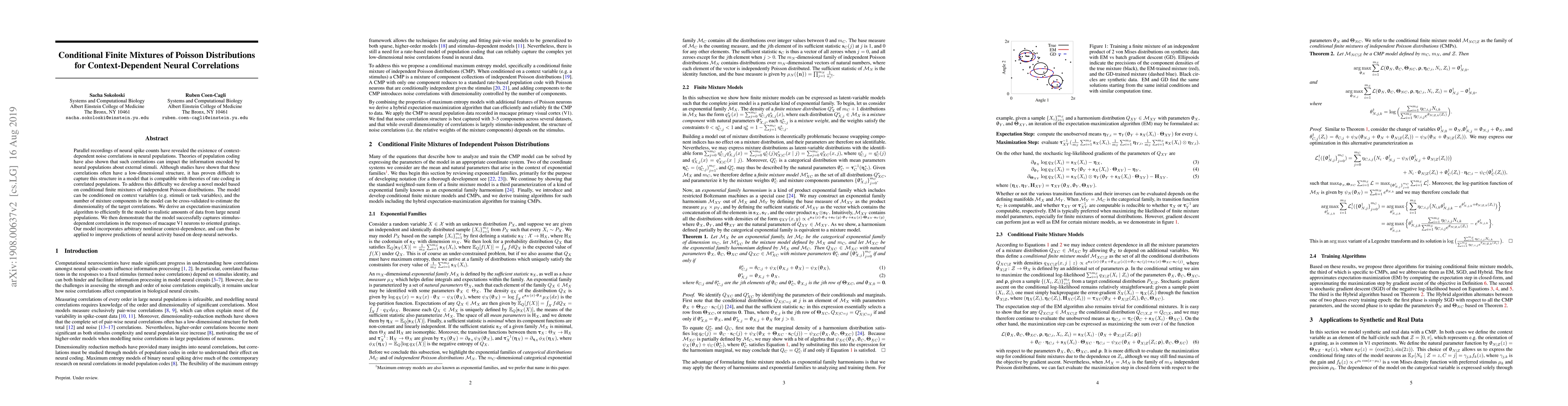 Parallel recordings of neural spike counts have revealed the existence of context-dependent noise correlations in neural populations. Theories of population coding have also shown that such correlations can impact the information encoded by neural populations about external stimuli. Although studies have shown that these correlations often have a low-dimensional structure, it has proven difficult to capture this structure in a model that is compatible with theories of rate coding in correlated populations. To address this difficulty we develop a novel model based on conditional finite mixtures of independent Poisson distributions. The model can be conditioned on context variables (e.g. stimuli or task variables), and the number of mixture components in the model can be cross-validated to estimate the dimensionality of the target correlations. We derive an expectation-maximization algorithm to efficiently fit the model to realistic amounts of data from large neural populations. We then demonstrate that the model successfully captures stimulus-dependent correlations in the responses of macaque V1 neurons to oriented gratings. Our model incorporates arbitrary nonlinear context-dependence, and can thus be applied to improve predictions of neural activity based on deep neural networks.
