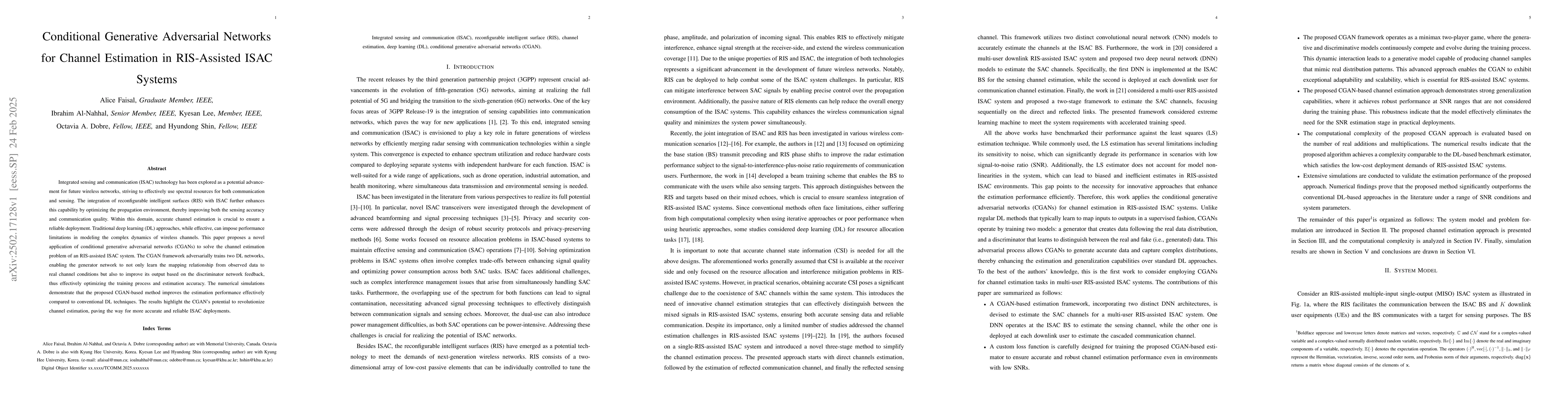 This work is novel as it introduces CGANs for channel estimation in the context of RIS-assisted ISAC systems, addressing the limitations of conventional deep learning approaches in modeling complex wireless channel dynamics.