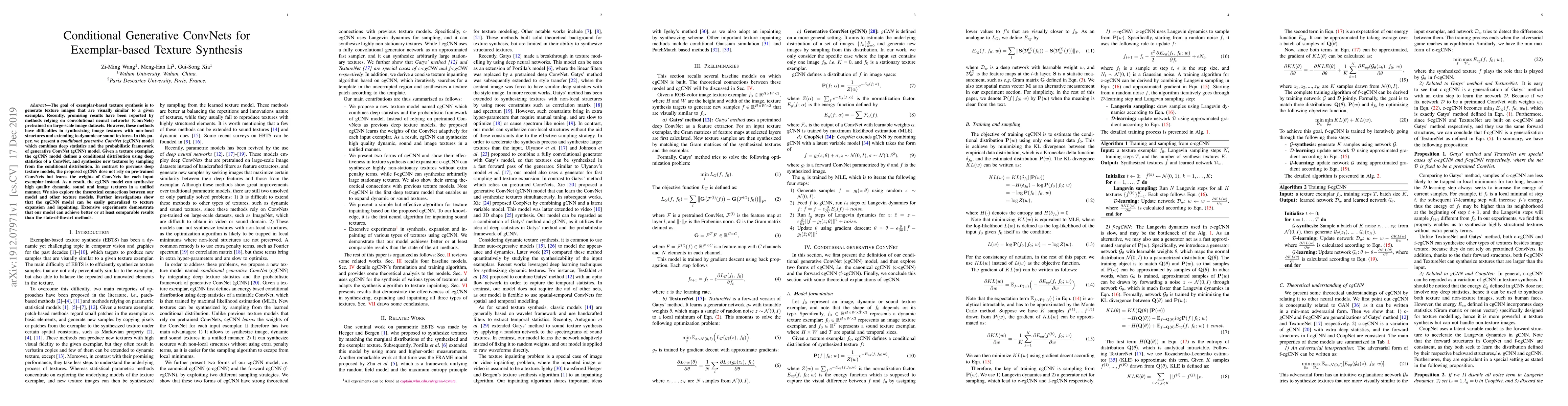 This paper introduces a conditional generative ConvNet (cgCNN) model for exemplar-based texture synthesis, which synthesizes high-quality dynamic, sound, and image textures without relying on pre-trained ConvNets. The cgCNN model learns ConvNet weights for each exemplar, achieving better or comparable results to state-of-the-art methods.