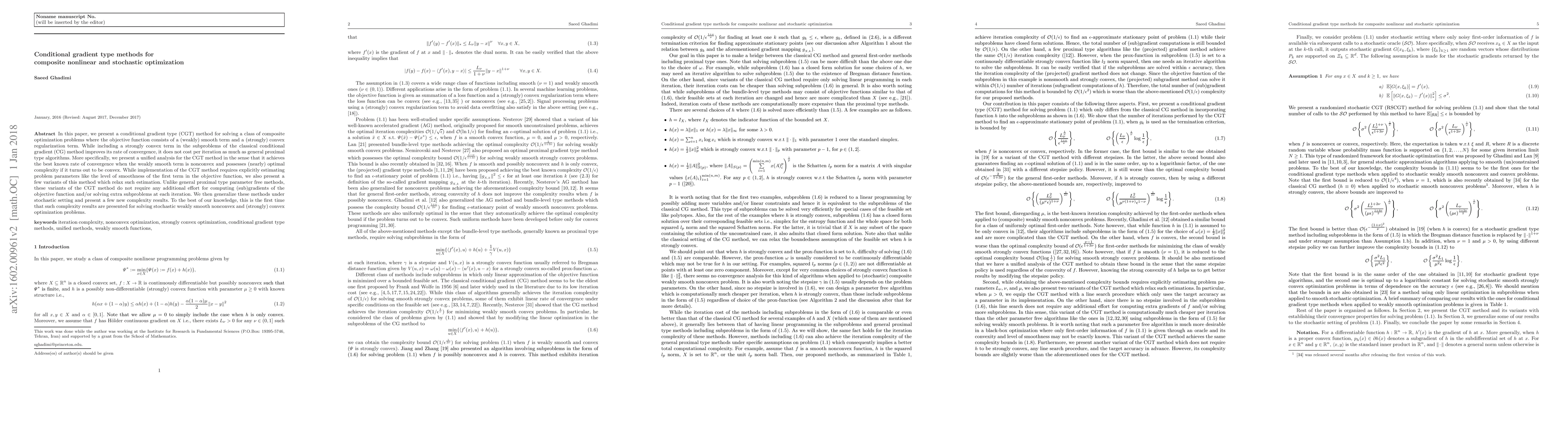 This paper introduces a conditional gradient type method for composite optimization problems with a weakly smooth and a strongly convex term. It achieves optimal convergence rates and complexity, especially for nonconvex problems, while requiring less per-iteration cost compared to proximal methods. The method is generalized for stochastic settings with new complexity results for weakly smooth nonconvex and strongly convex optimization.