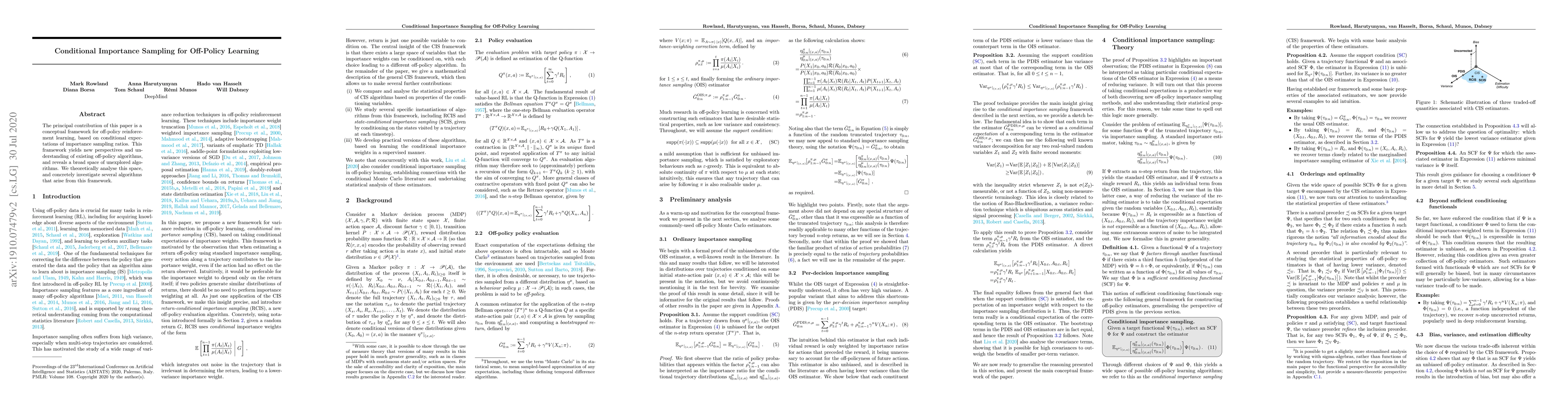 This paper introduces a new framework for off-policy reinforcement learning using conditional importance sampling, providing fresh insights into existing algorithms and uncovering a wide range of unexplored methods. The authors conduct theoretical analysis and explore several new algorithms derived from this framework.