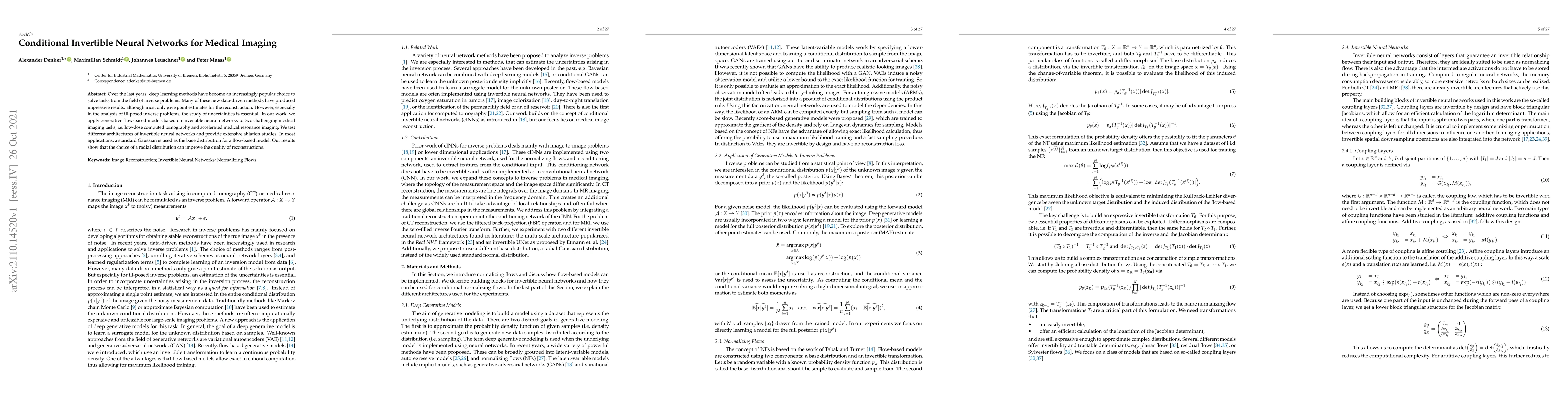 This research explores the use of conditional invertible neural networks for solving inverse problems in medical imaging, specifically low-dose computed tomography and accelerated MRI. The study finds that a radial distribution in generative flow-based models can enhance reconstruction quality compared to standard Gaussian distributions.