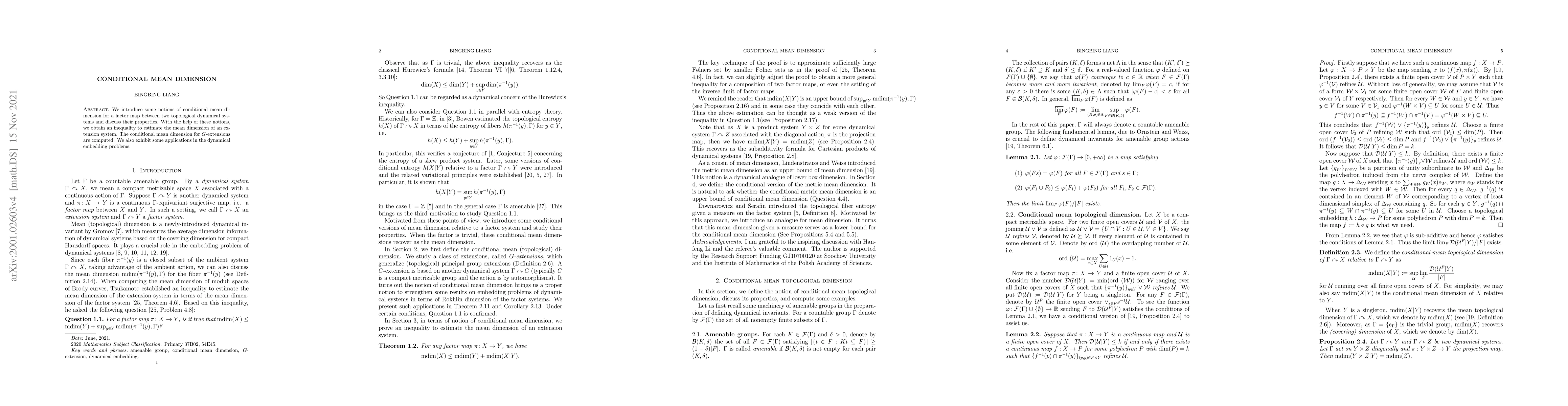 This paper introduces conditional mean dimension concepts for factor maps between topological dynamical systems and uses them to derive an inequality for estimating the mean dimension of extension systems. It computes the conditional mean dimension for $G$-extensions and discusses applications in dynamical embedding problems.