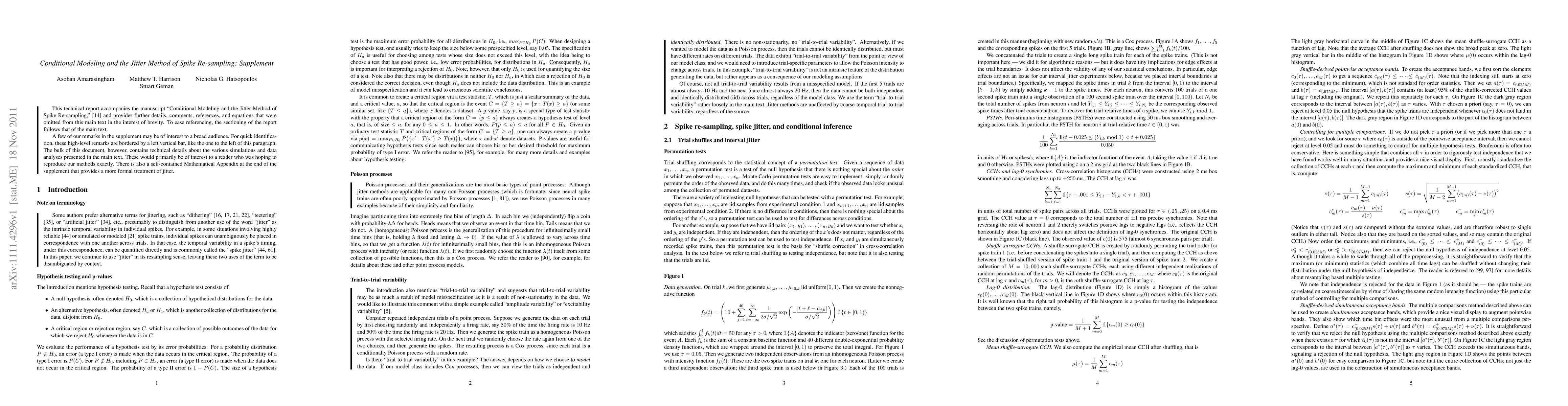 This technical report accompanies the manuscript "Conditional Modeling and the Jitter Method of Spike Re-sampling." It contains further details, comments, references, and equations concerning various simulations and data analyses presented in that manuscript, as well as a self-contained Mathematical Appendix that provides a formal treatment of jitter-based spike re-sampling methods.