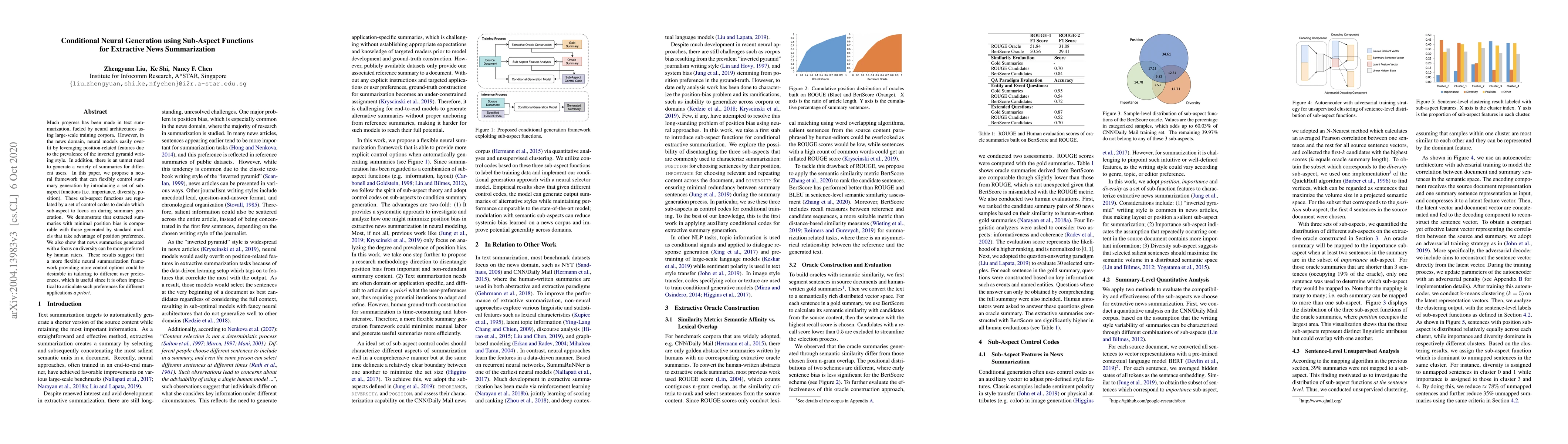 Researchers proposed a neural framework for news summarization that allows flexible control over summary generation through sub-aspect functions and control codes, achieving minimal position bias and diverse summaries preferred by human raters.