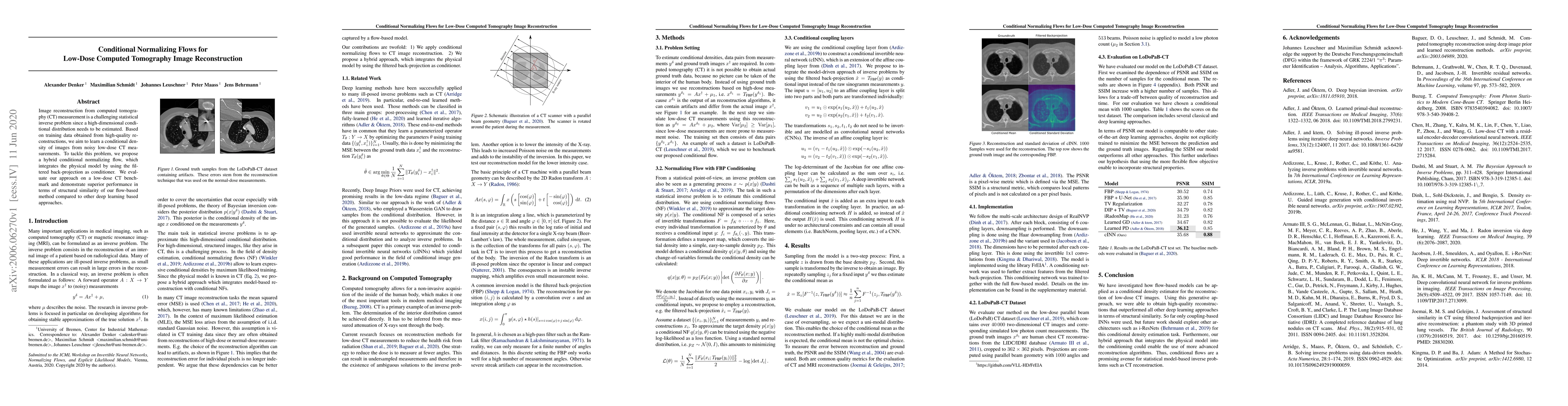 This paper proposes a hybrid conditional normalizing flow to reconstruct low-dose CT images, integrating the physical model via filtered back-projection. The method demonstrates superior structural similarity compared to other deep learning approaches on a benchmark dataset.