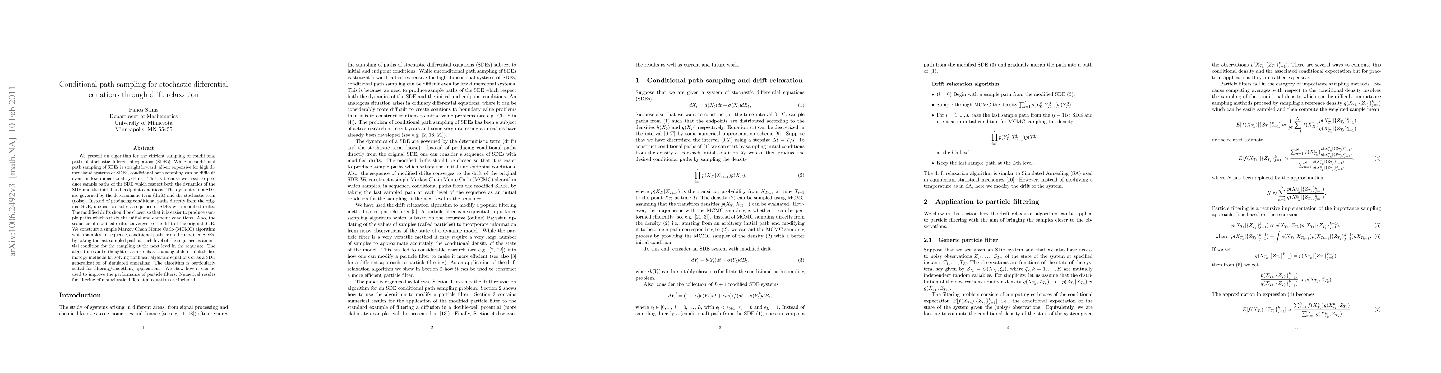 We present an algorithm for the efficient sampling of conditional paths of stochastic differential equations (SDEs). While unconditional path sampling of SDEs is straightforward, albeit expensive for high dimensional systems of SDEs, conditional path sampling can be difficult even for low dimensional systems. This is because we need to produce sample paths of the SDE which respect both the dynamics of the SDE and the initial and endpoint conditions. The dynamics of a SDE are governed by the deterministic term (drift) and the stochastic term (noise). Instead of producing conditional paths directly from the original SDE, one can consider a sequence of SDEs with modified drifts. The modified drifts should be chosen so that it is easier to produce sample paths which satisfy the initial and endpoint conditions. Also, the sequence of modified drifts converges to the drift of the original SDE. We construct a simple Markov Chain Monte Carlo (MCMC) algorithm which samples, in sequence, conditional paths from the modified SDEs, by taking the last sampled path at each level of the sequence as an initial condition for the sampling at the next level in the sequence. The algorithm can be thought of as a stochastic analog of deterministic homotopy methods for solving nonlinear algebraic equations or as a SDE generalization of simulated annealing. The algorithm is particularly suited for filtering/smoothing applications. We show how it can be used to improve the performance of particle filters. Numerical results for filtering of a stochastic differential equation are included.