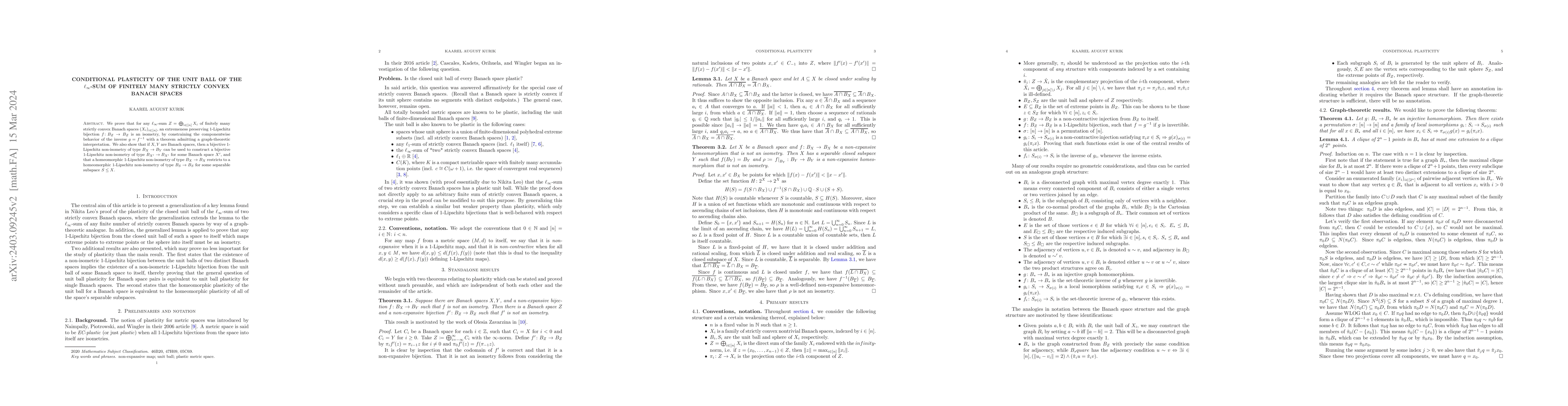 We prove that for any $\ell_\infty$-sum $Z = \bigoplus_{i \in [n]} X_i$ of finitely many strictly convex Banach spaces $(X_i)_{i \in [n]}$, an extremeness preserving 1-Lipschitz bijection $f\colon B_Z \to B_Z$ is an isometry, by constraining the componentwise behavior of the inverse $g=f^{-1}$ with a theorem admitting a graph-theoretic interpretation. We also show that if $X, Y$ are Banach spaces, then a bijective 1-Lipschitz non-isometry of type $B_X \to B_Y$ can be used to construct a bijective 1-Lipschitz non-isometry of type $B_{X'} \to B_{X'}$ for some Banach space $X'$, and that a homeomorphic 1-Lipschitz non-isometry of type $B_X \to B_X$ restricts to a homeomorphic 1-Lipschitz non-isometry of type $B_S \to B_S$ for some separable subspace $S \leq X$.