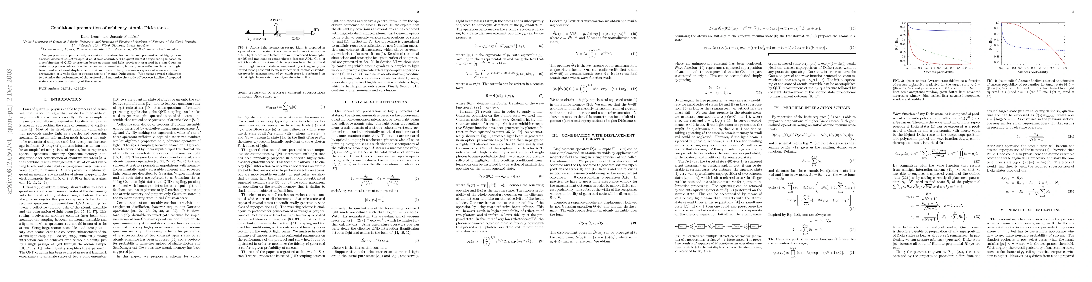 This paper proposes a method for conditionally preparing non-classical collective spin states of atomic ensembles using QND interaction, photon subtraction from squeezed vacuum, and homodyne detection. The technique allows for non-deterministic generation of various atomic Dicke states, with optimization strategies to balance fidelity and success probability.