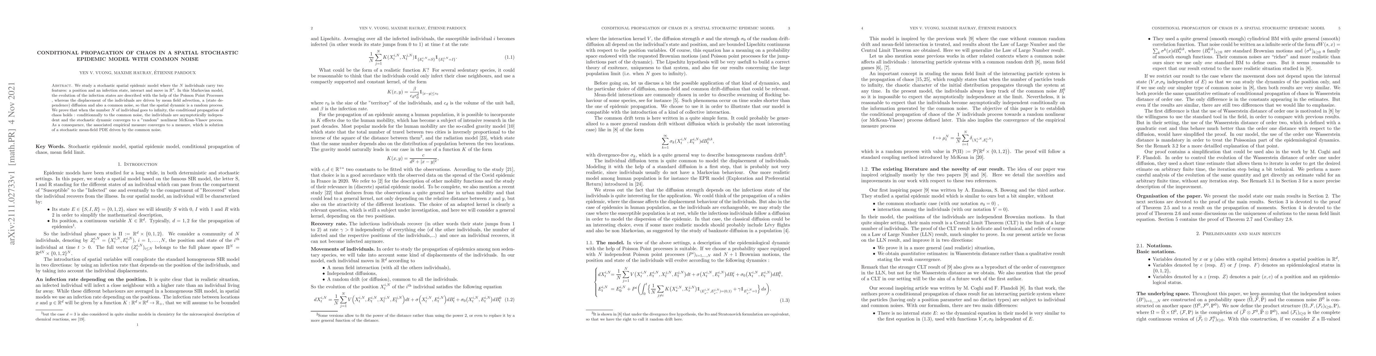 This paper explores a stochastic spatial epidemic model where individuals move and interact in $\mathbb{R}^d$, proving that as the population size $N$ approaches infinity, the conditional propagation of chaos holds. The model converges to a random nonlinear McKean-Vlasov process driven by common noise.