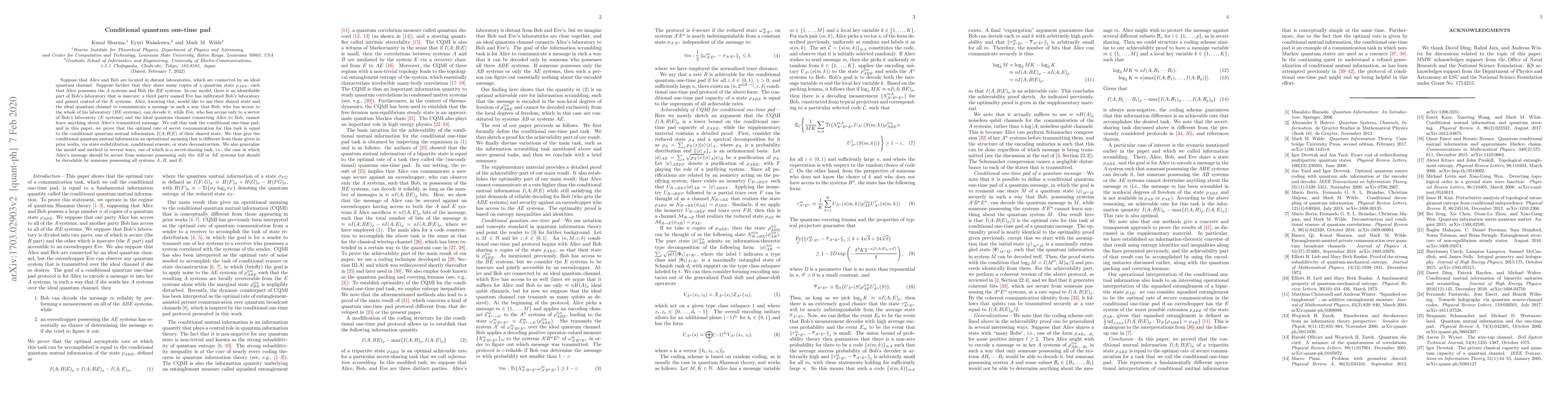 Suppose that Alice and Bob are located in distant laboratories, which are connected by an ideal quantum channel. Suppose further that they share many copies of a quantum state $\rho_{ABE}$, such that Alice possesses the $A$ systems and Bob the $BE$ systems. In our model, there is an identifiable part of Bob's laboratory that is insecure: a third party named Eve has infiltrated Bob's laboratory and gained control of the $E$ systems. Alice, knowing this, would like use their shared state and the ideal quantum channel to communicate a message in such a way that Bob, who has access to the whole of his laboratory ($BE$ systems), can decode it, while Eve, who has access only to a sector of Bob's laboratory ($E$ systems) and the ideal quantum channel connecting Alice to Bob, cannot learn anything about Alice's transmitted message. We call this task the conditional one-time pad, and in this paper, we prove that the optimal rate of secret communication for this task is equal to the conditional quantum mutual information $I(A;B|E)$ of their shared state. We thus give the conditional quantum mutual information an operational meaning that is different from those given in prior works, via state redistribution, conditional erasure, or state deconstruction. We also generalize the model and method in several ways, one of which demonstrates that the negative tripartite interaction information $-I_{3}(A;B;E) = I(A;BE)-I(A;B)-I(A;E)$ of a tripartite state $\rho_{ABE}$ is an achievable rate for a secret-sharing task, i.e., the case in which Alice's message should be secure from someone possessing only the $AB$ or $AE$ systems but should be decodable by someone possessing all systems $A$, $B$, and $E$.