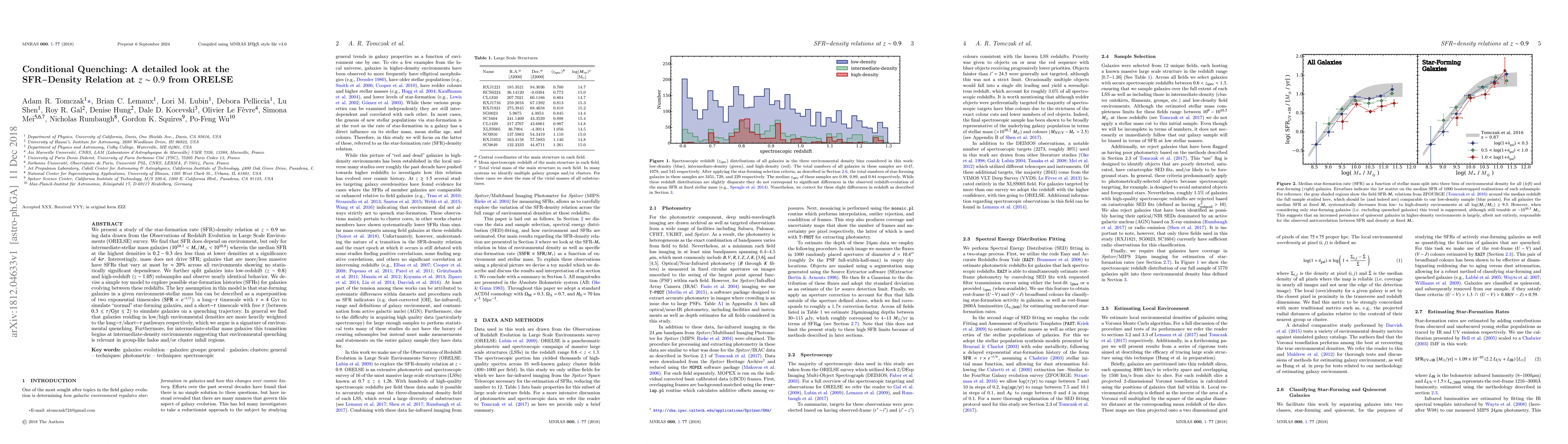 This study investigates the star-formation rate (SFR)-density relation at z ~ 0.9 using ORELSE data, finding that SFR depends on environment for intermediate-stellar mass galaxies, with lower SFRs in denser regions. A simple model suggests environmental quenching is significant in group-like halos and cluster infall regions.