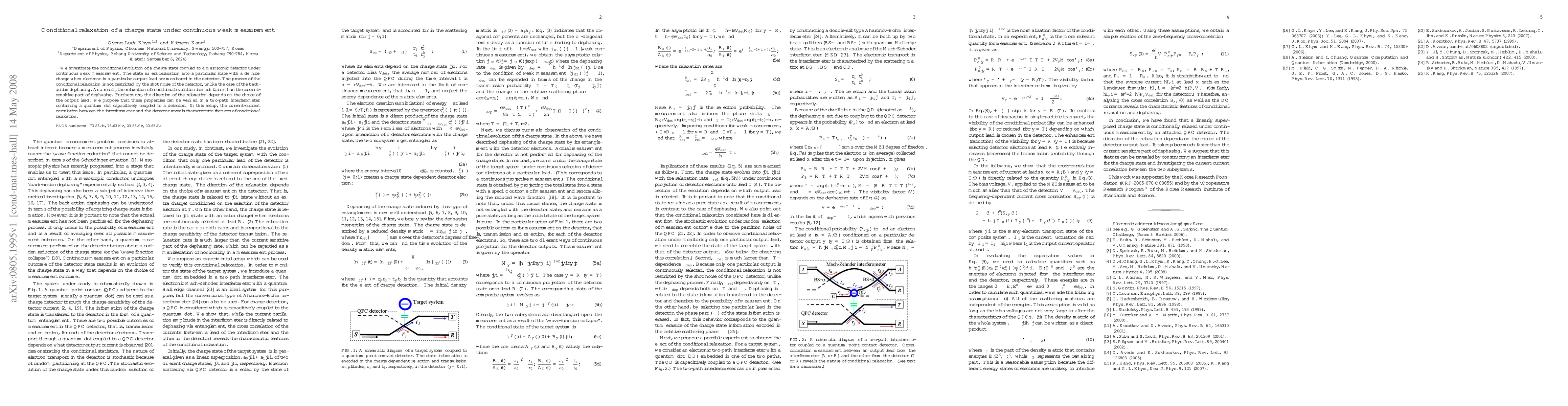 This paper explores how a charge state undergoes conditional relaxation into a definite state when monitored by a mesoscopic detector under continuous weak measurement, revealing faster relaxation than back-action dephasing and directionality dependent on the output lead. The findings suggest a two-path interferometer setup with a quantum dot can demonstrate these unique relaxation properties.