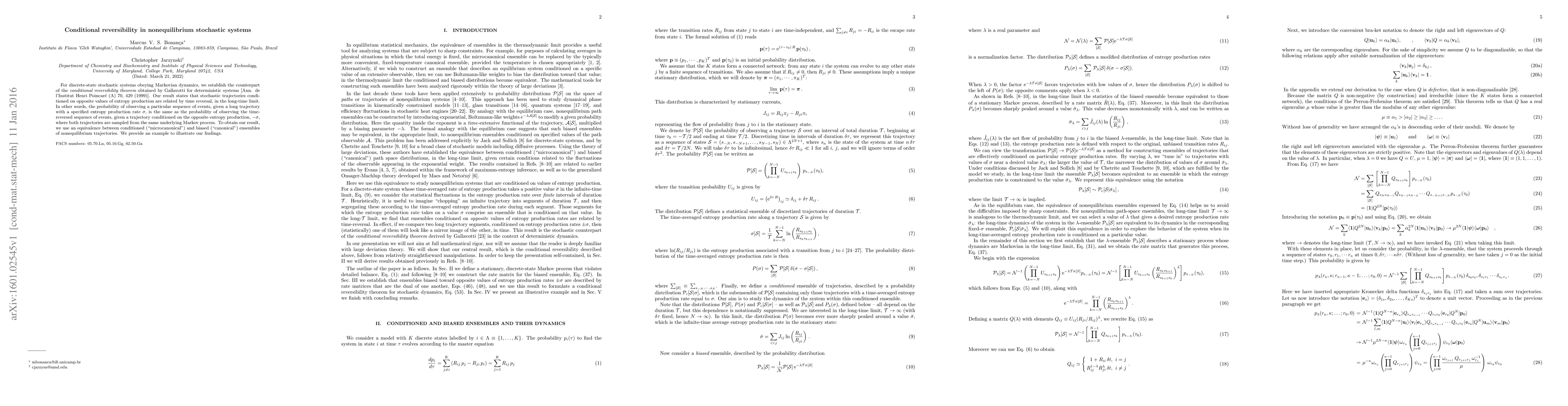 This paper establishes a conditional reversibility theorem for Markovian stochastic systems, showing that trajectories conditioned on opposite entropy production values are related by time reversal in the long-time limit. The authors use an equivalence between conditioned and biased ensembles to demonstrate this result and provide an example to illustrate their findings.