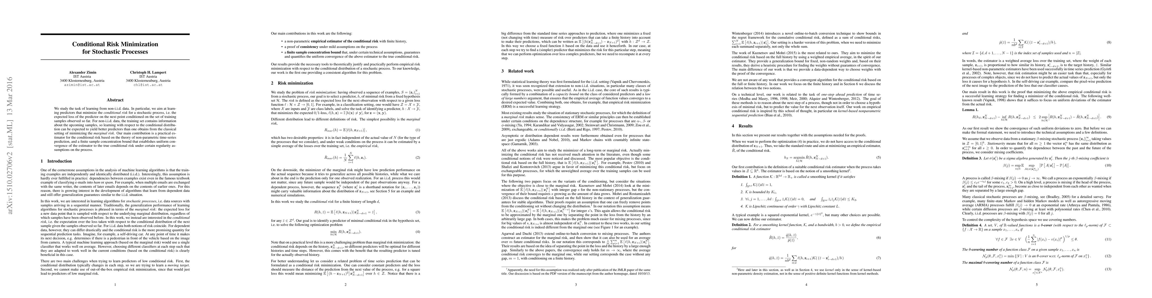 This paper proposes a method for learning predictors that minimize the conditional risk for stochastic processes from non-i.i.d. data, introducing a practical estimator based on non-parametric time-series prediction and providing a concentration bound for its convergence to the true conditional risk under certain assumptions.