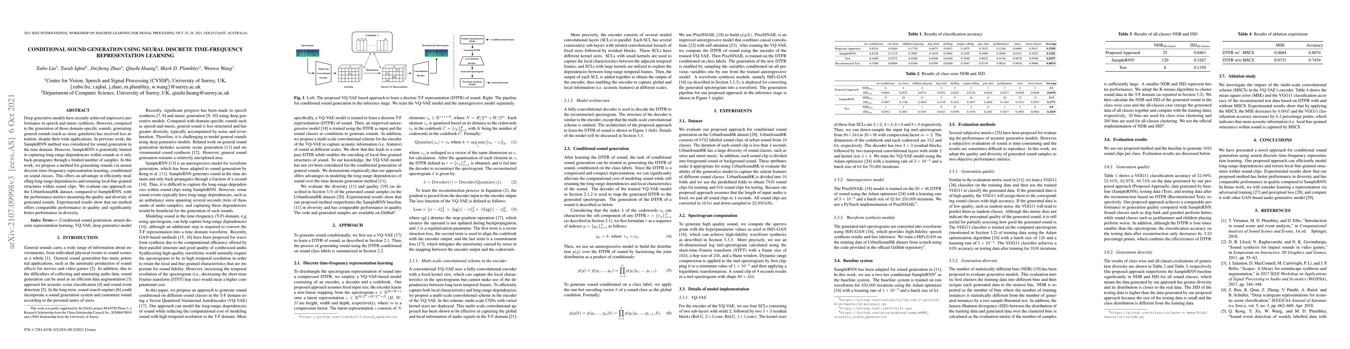 A new method for generating general sounds like siren and gunshots using neural discrete time-frequency representation learning offers comparable quality and better diversity compared to existing methods like SampleRNN.