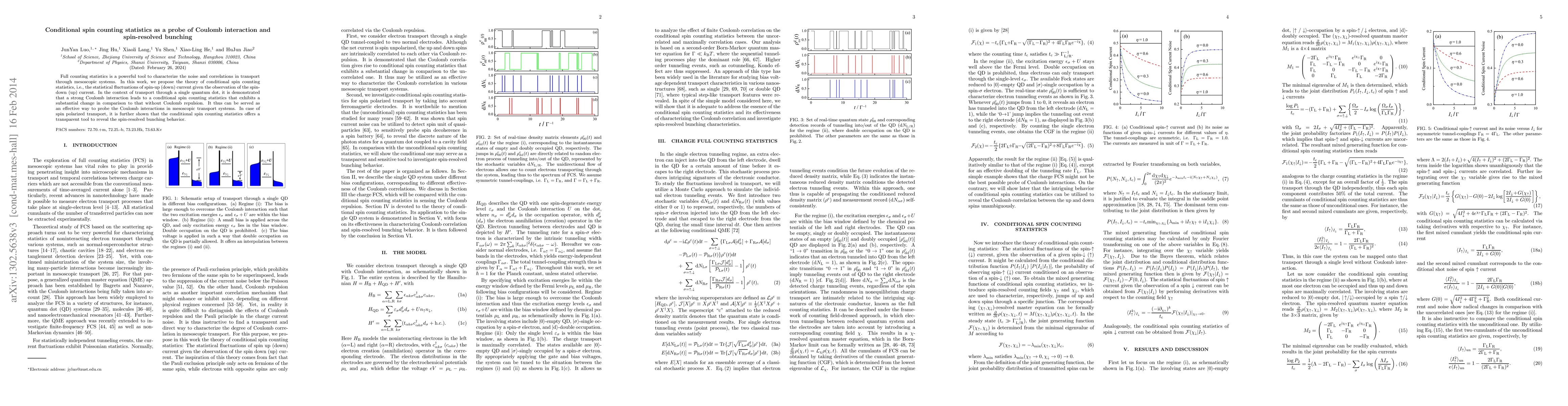 This paper proposes a theoretical framework for conditional spin counting statistics to analyze noise and correlations in transport through mesoscopic systems, demonstrating its effectiveness in probing Coulomb interactions in quantum dots and revealing spin-resolved bunching in spin-polarized transport.