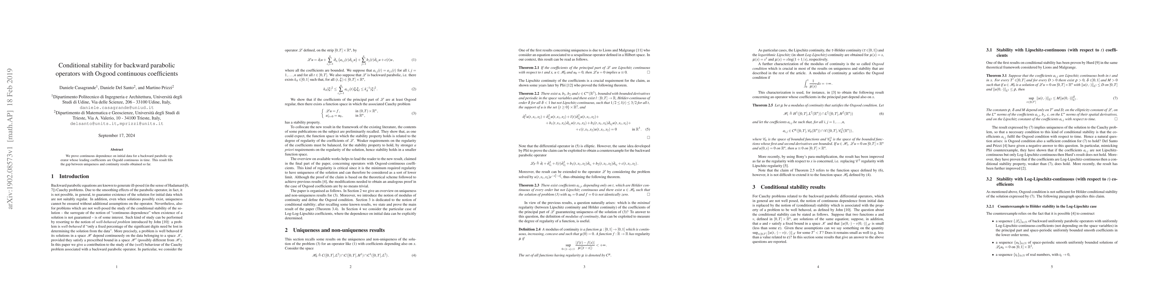 Summary: This paper establishes continuous dependence on initial data for a backward parabolic operator with Osgood continuous coefficients, bridging the gap between existing uniqueness and continuity results. The findings enhance the understanding of stability in such operators.