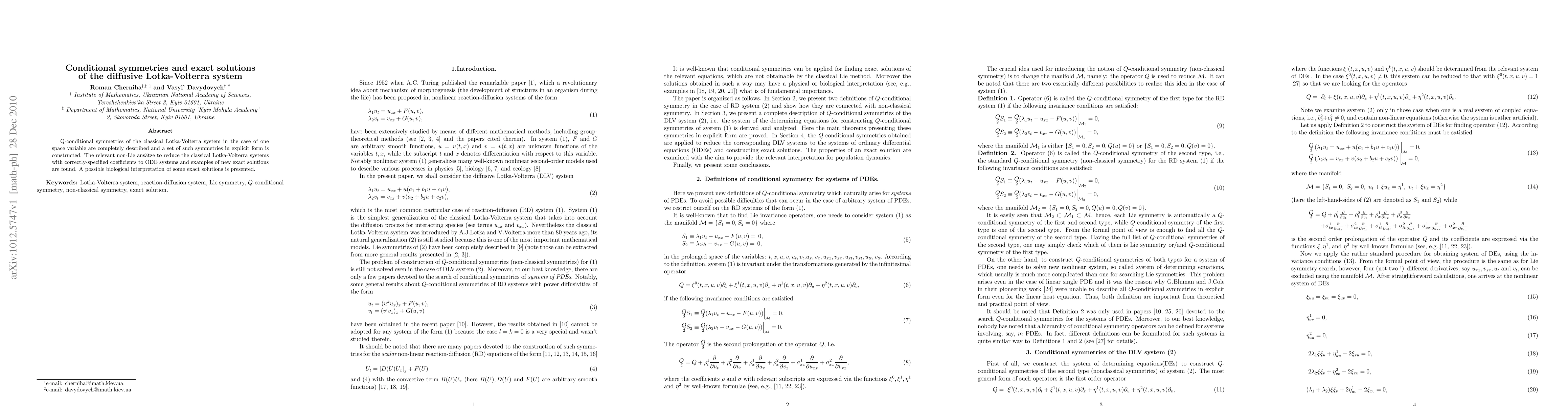 This paper explores Q-conditional symmetries of the diffusive Lotka-Volterra system with one space variable, constructing explicit symmetry sets. It reduces the system to ODEs using non-Lie ansätze and presents new exact solutions with potential biological interpretations.