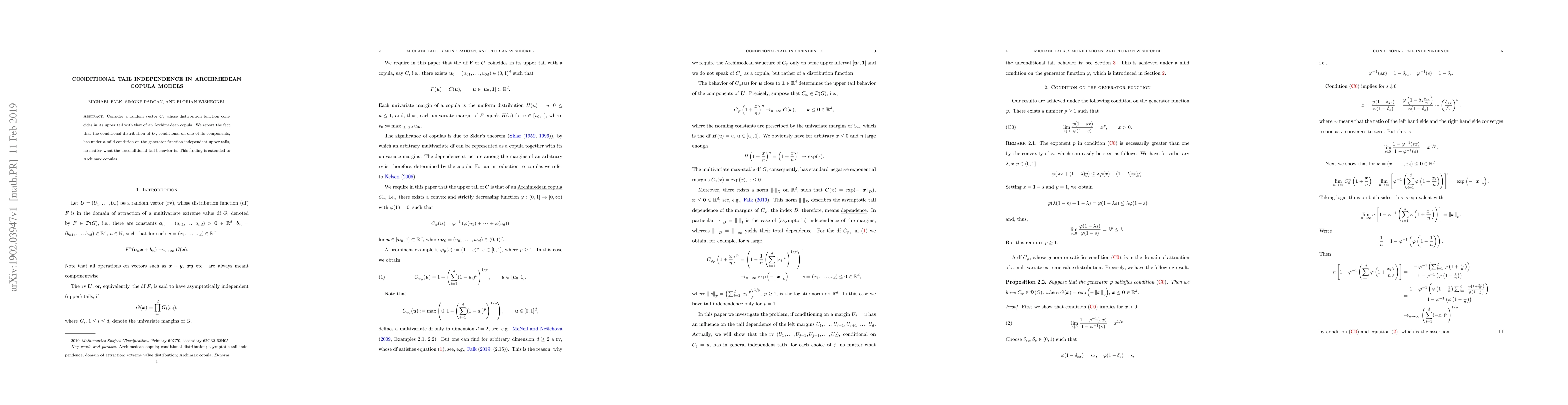 Consider a random vector $U$, whose distribution function coincides in its upper tail with that of an Archimedean copula. We report the fact that the conditional distribution of $U$, conditional on one of its components, has under a mild condition on the generator function independent upper tails, no matter what the unconditional tail behavior is. This finding is extended to Archimax copulas.