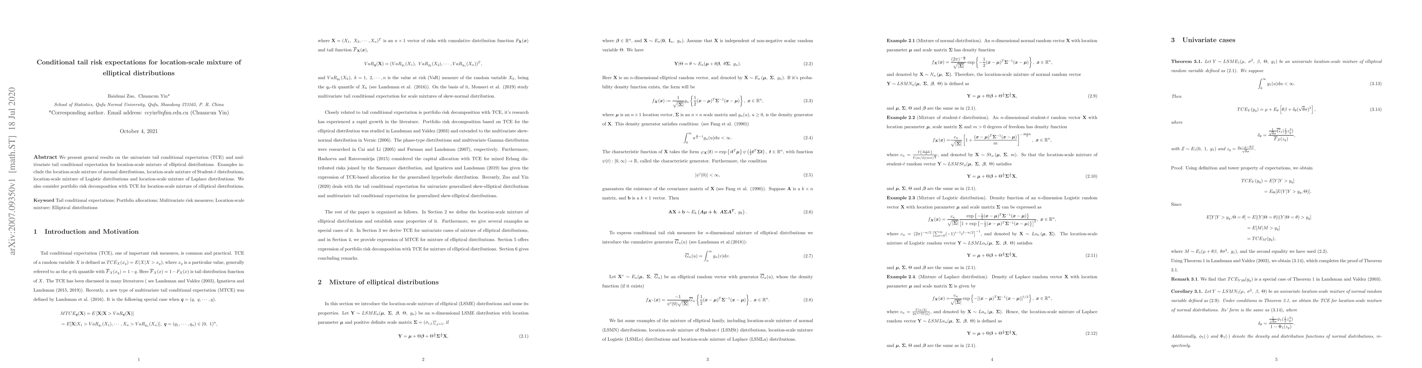 This paper explores the tail conditional expectations (TCE) for various location-scale mixtures of elliptical distributions, including normal, Student-$t$, Logistic, and Laplace distributions, and applies these results to portfolio risk decomposition.