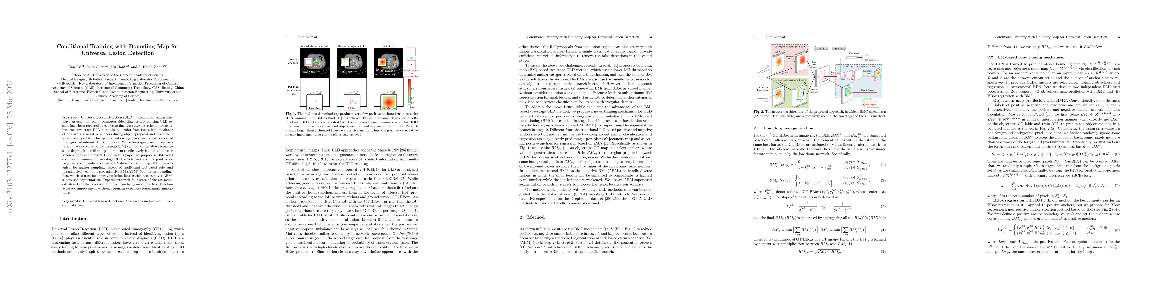 A new approach to Universal Lesion Detection improves detection accuracy with a bounding map-based conditional training method that reduces anchor imbalance and adapts to lesion size, without requiring additional annotations.