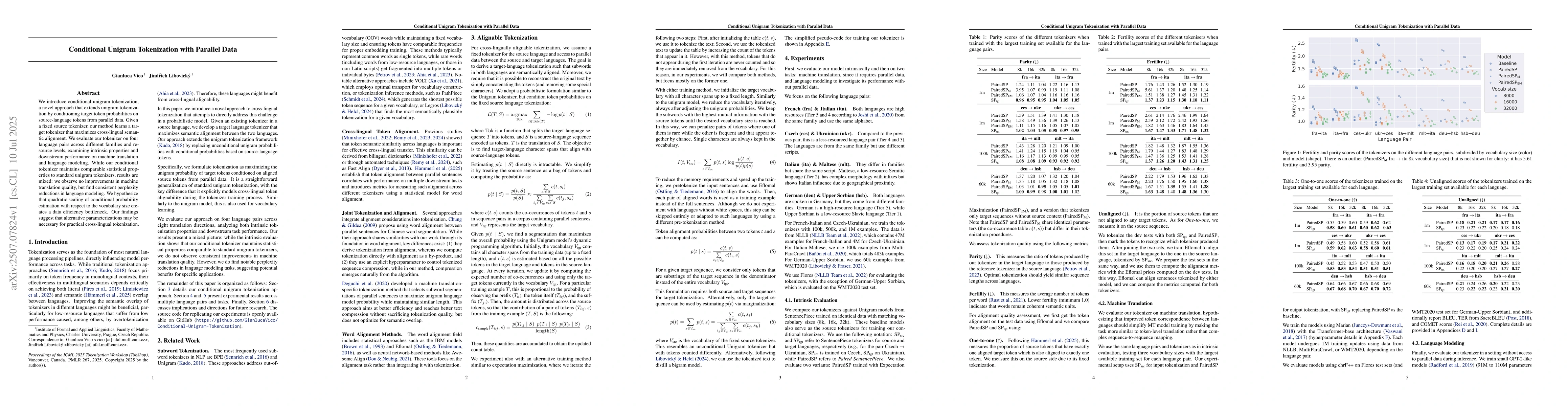 We introduce conditional unigram tokenization, a novel approach that extends unigram tokenization by conditioning target token probabilities on source-language tokens from parallel data. Given a fixed source tokenizer, our method learns a target tokenizer that maximizes cross-lingual semantic alignment. We evaluate our tokenizer on four language pairs across different families and resource levels, examining intrinsic properties and downstream performance on machine translation and language modeling. While our conditional tokenizer maintains comparable statistical properties to standard unigram tokenizers, results are mixed: we observe no improvements in machine translation quality, but find consistent perplexity reductions in language modeling. We hypothesize that quadratic scaling of conditional probability estimation with respect to the vocabulary size creates a data efficiency bottleneck. Our findings suggest that alternative parameterizations may be necessary for practical cross-lingual tokenization.