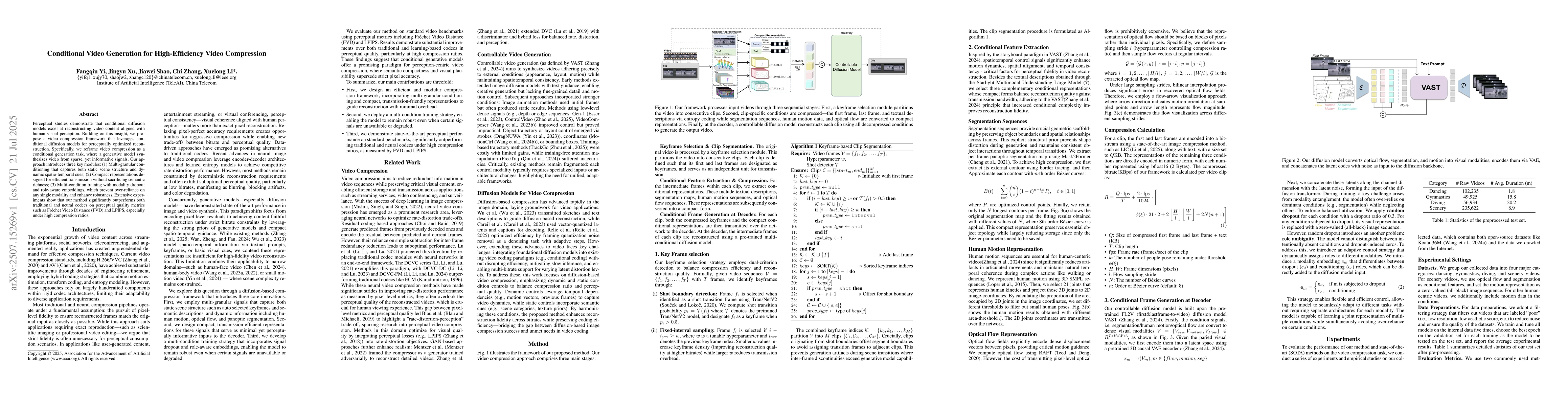 Perceptual studies demonstrate that conditional diffusion models excel at reconstructing video content aligned with human visual perception. Building on this insight, we propose a video compression framework that leverages conditional diffusion models for perceptually optimized reconstruction. Specifically, we reframe video compression as a conditional generation task, where a generative model synthesizes video from sparse, yet informative signals. Our approach introduces three key modules: (1) Multi-granular conditioning that captures both static scene structure and dynamic spatio-temporal cues; (2) Compact representations designed for efficient transmission without sacrificing semantic richness; (3) Multi-condition training with modality dropout and role-aware embeddings, which prevent over-reliance on any single modality and enhance robustness. Extensive experiments show that our method significantly outperforms both traditional and neural codecs on perceptual quality metrics such as Fr\'echet Video Distance (FVD) and LPIPS, especially under high compression ratios.