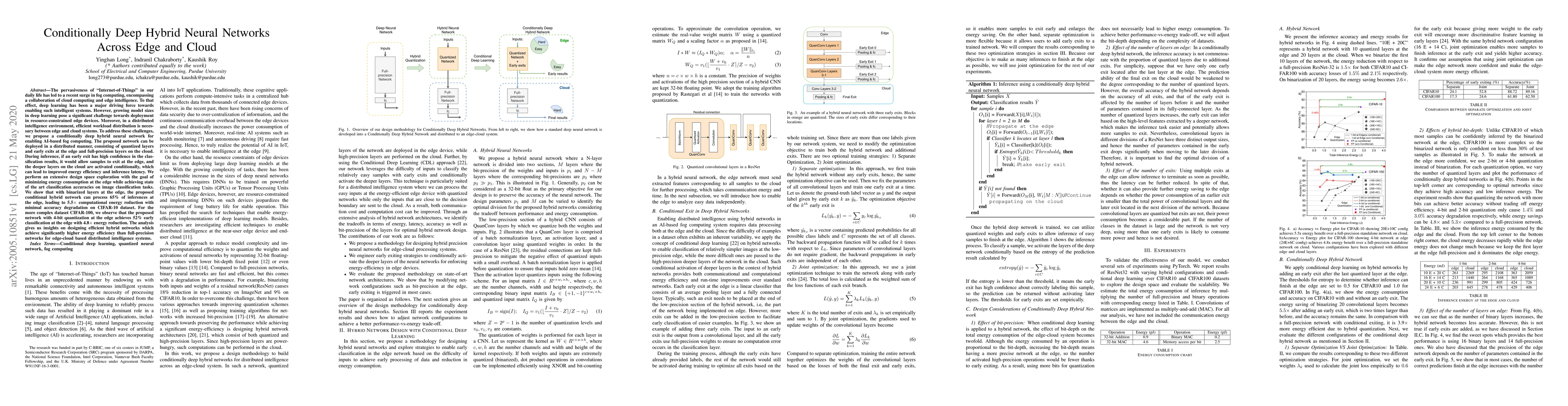 This paper proposes a conditionally deep hybrid neural network to optimize AI-based fog computing across edge and cloud environments. The network employs quantized layers and early exits at the edge, activating deeper layers conditionally on the cloud, which significantly reduces energy consumption while maintaining high classification accuracy.
