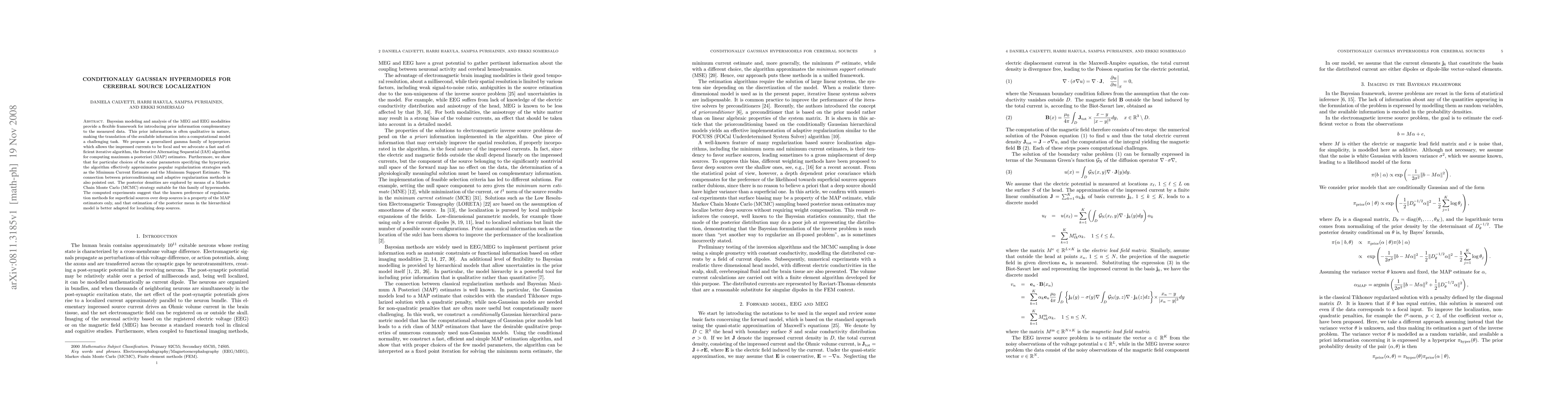 Bayesian modeling and analysis of the MEG and EEG modalities provide a flexible framework for introducing prior information complementary to the measured data. This prior information is often qualitative in nature, making the translation of the available information into a computational model a challenging task. We propose a generalized gamma family of hyperpriors which allows the impressed currents to be focal and we advocate a fast and efficient iterative algorithm, the Iterative Alternating Sequential (IAS) algorithm for computing maximum a posteriori (MAP) estimates. Furthermore, we show that for particular choices of the scalar parameters specifying the hyperprior, the algorithm effectively approximates popular regularization strategies such as the Minimum Current Estimate and the Minimum Support Estimate. The connection between priorconditioning and adaptive regularization methods is also pointed out. The posterior densities are explored by means of a Markov Chain Monte Carlo (MCMC) strategy suitable for this family of hypermodels. The computed experiments suggest that the known preference of regularization methods for superficial sources over deep sources is a property of the MAP estimators only, and that estimation of the posterior mean in the hierarchical model is better adapted for localizing deep sources.
