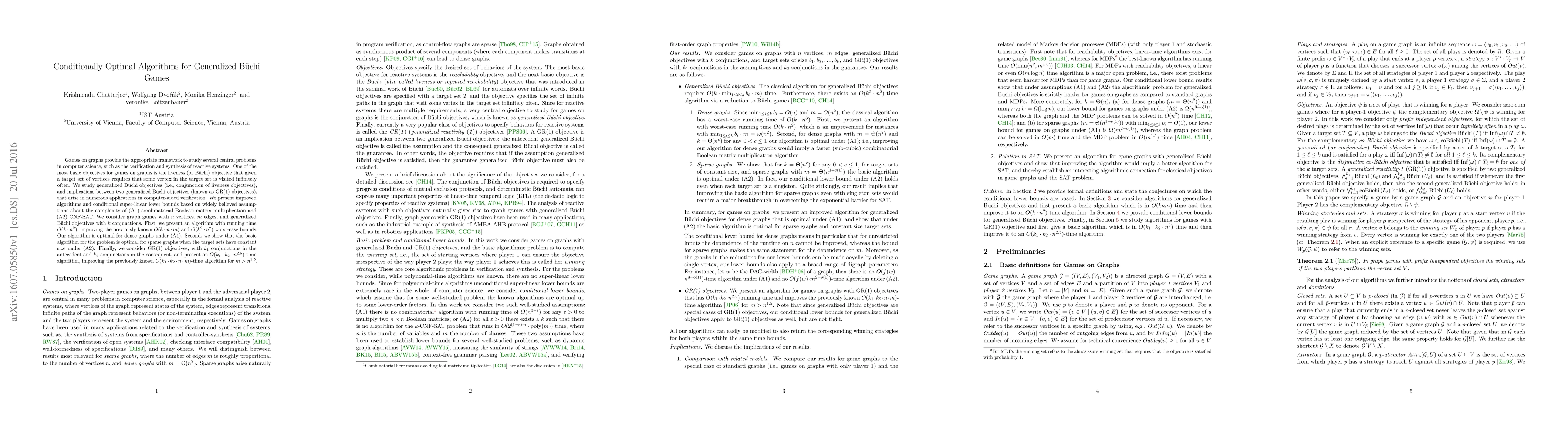 Games on graphs provide the appropriate framework to study several central problems in computer science, such as the verification and synthesis of reactive systems. One of the most basic objectives for games on graphs is the liveness (or B\"uchi) objective that given a target set of vertices requires that some vertex in the target set is visited infinitely often. We study generalized B\"uchi objectives (i.e., conjunction of liveness objectives), and implications between two generalized B\"uchi objectives (known as GR(1) objectives), that arise in numerous applications in computer-aided verification. We present improved algorithms and conditional super-linear lower bounds based on widely believed assumptions about the complexity of (A1) combinatorial Boolean matrix multiplication and (A2) CNF-SAT. We consider graph games with $n$ vertices, $m$ edges, and generalized B\"uchi objectives with $k$ conjunctions. First, we present an algorithm with running time $O(k \cdot n^2)$, improving the previously known $O(k \cdot n \cdot m)$ and $O(k^2 \cdot n^2)$ worst-case bounds. Our algorithm is optimal for dense graphs under (A1). Second, we show that the basic algorithm for the problem is optimal for sparse graphs when the target sets have constant size under (A2). Finally, we consider GR(1) objectives, with $k_1$ conjunctions in the antecedent and $k_2$ conjunctions in the consequent, and present an $O(k_1 \cdot k_2 \cdot n^{2.5})$-time algorithm, improving the previously known $O(k_1 \cdot k_2 \cdot n \cdot m)$-time algorithm for $m > n^{1.5}$.