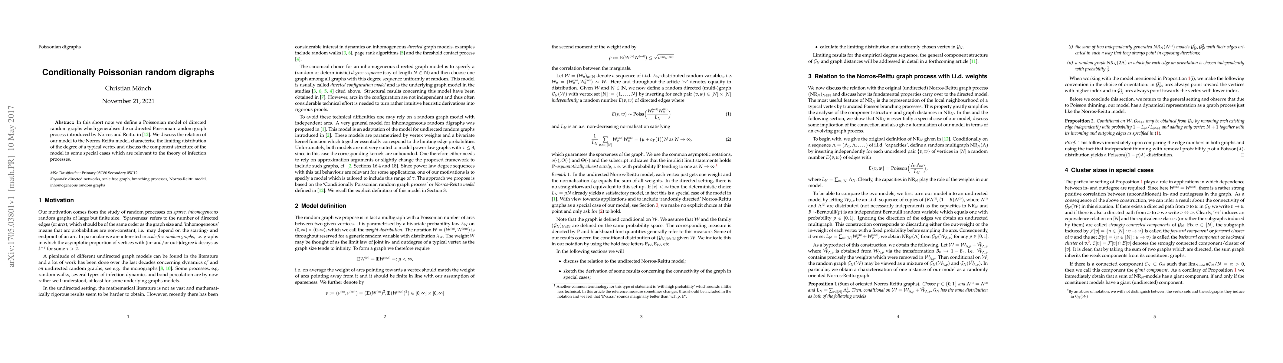 In this short note we define a Poissonian model of directed random graphs which generalises the undirected Poissonian random graph process introduced in [Norros, I.; Reittu, H. "On a conditionally Poissonian graph process." Adv. in Appl. Probab. 38 (2006), no. 1, 59--75]. We discuss the relation of our model to the Norros-Reittu model, characterise the limiting distribution of the degree of a typical vertex and discuss the component structure of the model in some special cases which are relevant to the theory of infection processes.