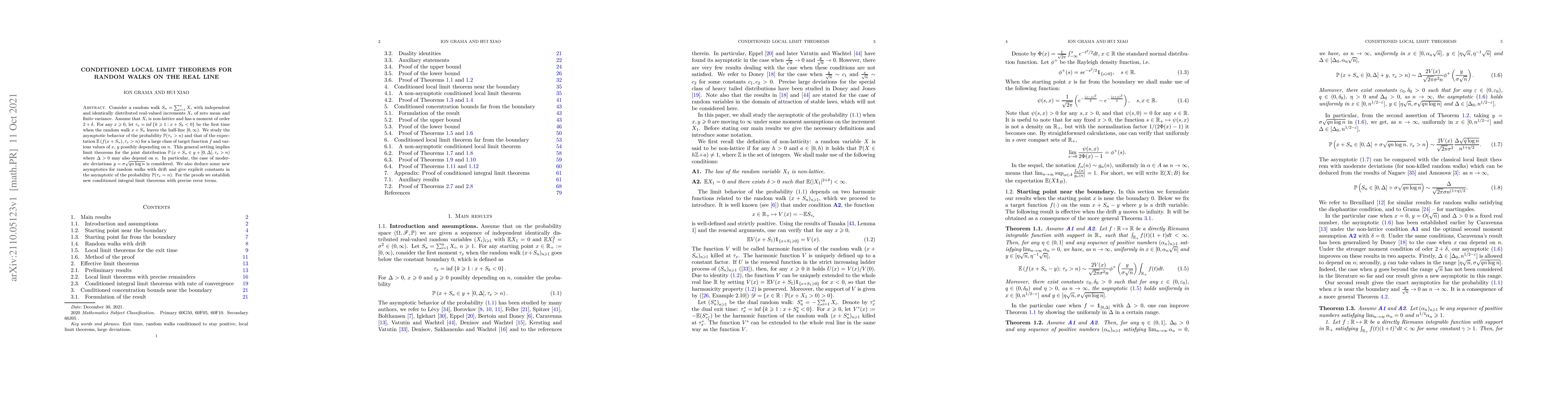 This paper investigates conditioned local limit theorems for random walks on the real line, focusing on the asymptotic behavior of probabilities and expectations when the walk first leaves the non-negative half-line. It establishes new conditioned integral limit theorems and provides explicit constants for the probability of the first exit time, with applications to moderate deviations and random walks with drift.