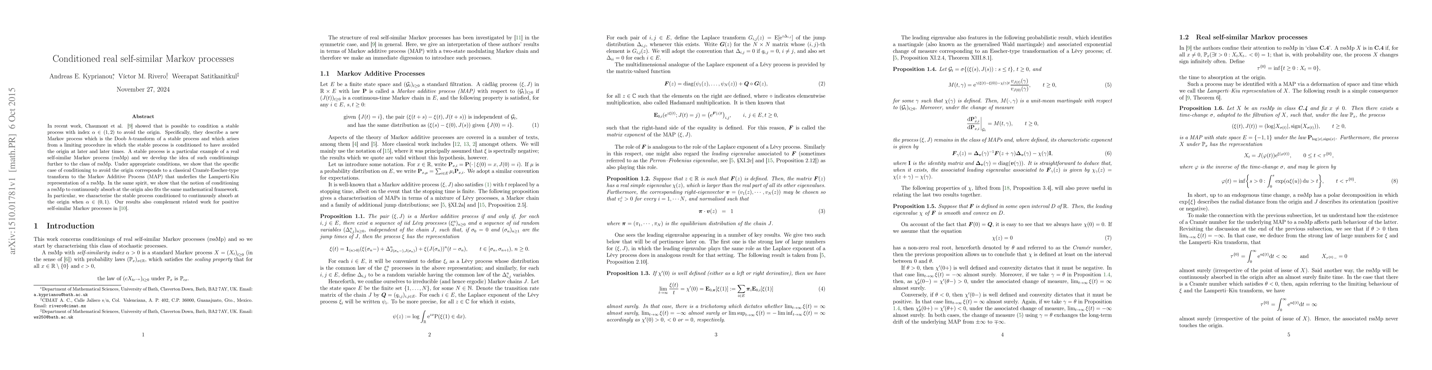 This paper extends the concept of conditioning stable processes to a broader class of real self-similar Markov processes (rssMp), demonstrating how conditioning to avoid or continuously absorb at the origin can be framed within a classical Cramér-Esscher-type transform to the Markov Additive Process. The authors provide a comprehensive mathematical framework for these conditionings, complementing prior work on positive self-similar Markov processes.