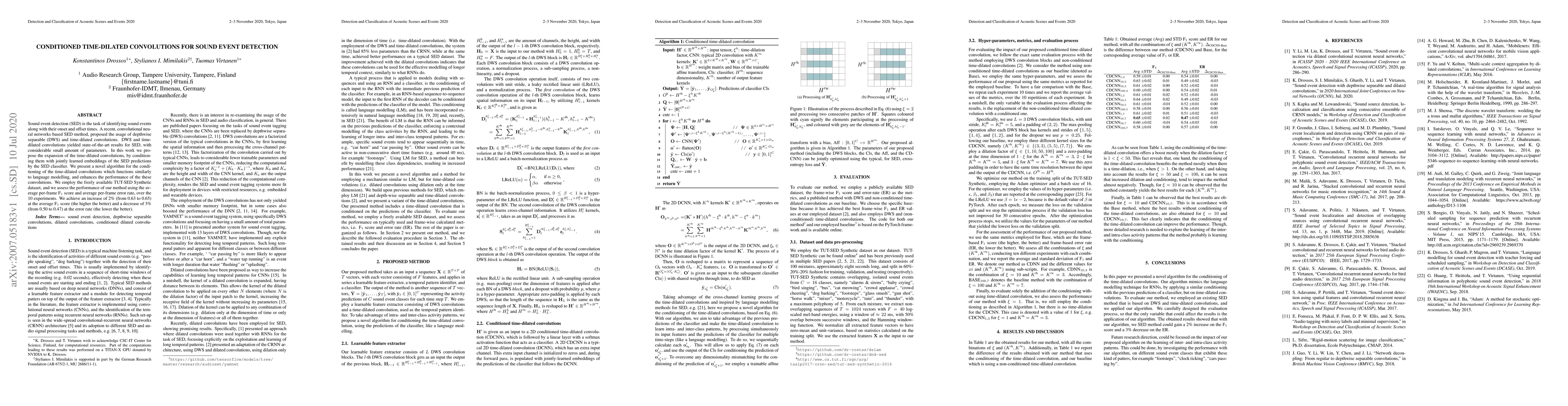 Sound event detection (SED) is the task of identifying sound events along with their onset and offset times. A recent, convolutional neural networks based SED method, proposed the usage of depthwise separable (DWS) and time-dilated convolutions. DWS and time-dilated convolutions yielded state-of-the-art results for SED, with considerable small amount of parameters. In this work we propose the expansion of the time-dilated convolutions, by conditioning them with jointly learned embeddings of the SED predictions by the SED classifier. We present a novel algorithm for the conditioning of the time-dilated convolutions which functions similarly to language modelling, and enhances the performance of the these convolutions. We employ the freely available TUT-SED Synthetic dataset, and we assess the performance of our method using the average per-frame $\text{F}_{1}$ score and average per-frame error rate, over the 10 experiments. We achieve an increase of 2\% (from 0.63 to 0.65) at the average $\text{F}_{1}$ score (the higher the better) and a decrease of 3\% (from 0.50 to 0.47) at the error rate (the lower the better).