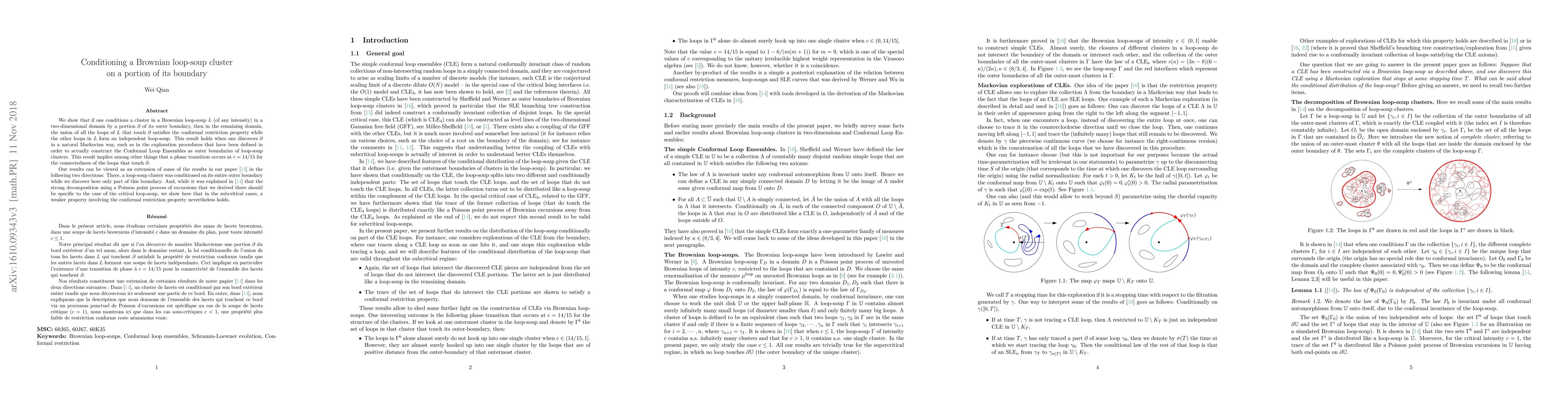 This paper demonstrates that conditioning a Brownian loop-soup cluster on a portion of its boundary results in loops touching the boundary satisfying the conformal restriction property, while the remaining loops form an independent loop-soup. This implies a phase transition at c = 14/15 for connectedness of loops touching the boundary.