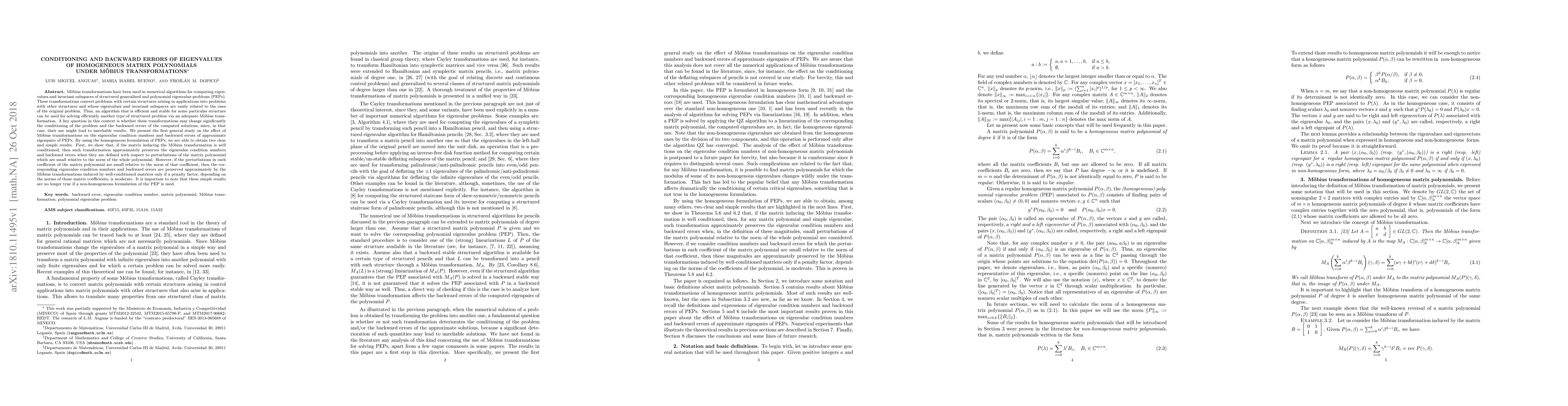 This paper investigates the impact of Möbius transformations on the conditioning and backward errors of eigenvalues in homogeneous matrix polynomial eigenvalue problems (PEPs). It finds that well-conditioned transformations preserve these properties under certain perturbation conditions, but a penalty factor may be necessary if the perturbations are relative to the coefficients.