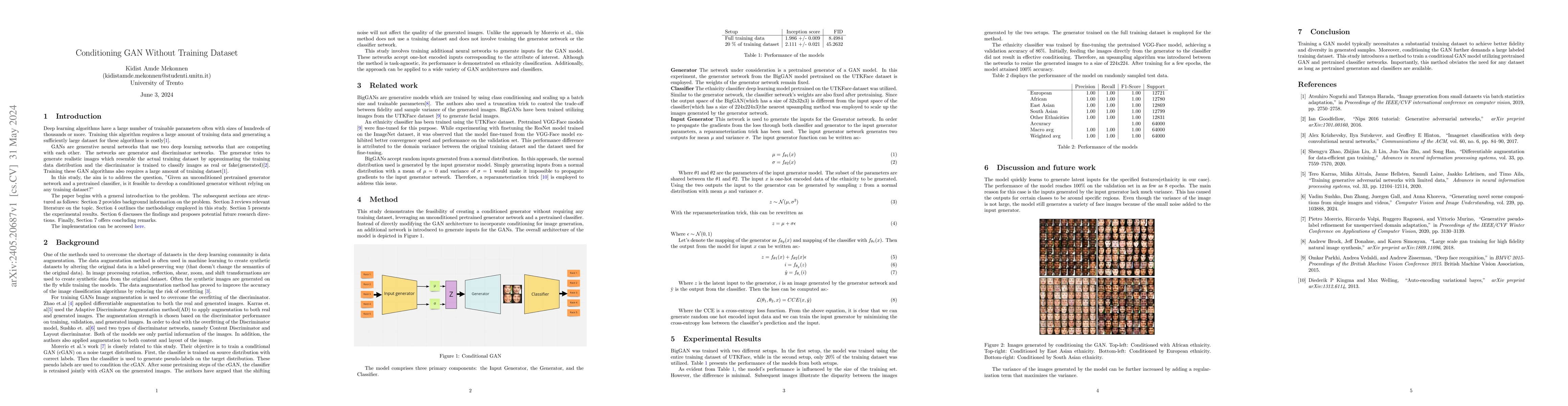 This paper explores the feasibility of conditioning a GAN's generator without using a training dataset, leveraging a pretrained generator and classifier. It proposes a methodology and presents experimental results, concluding with potential future research directions.