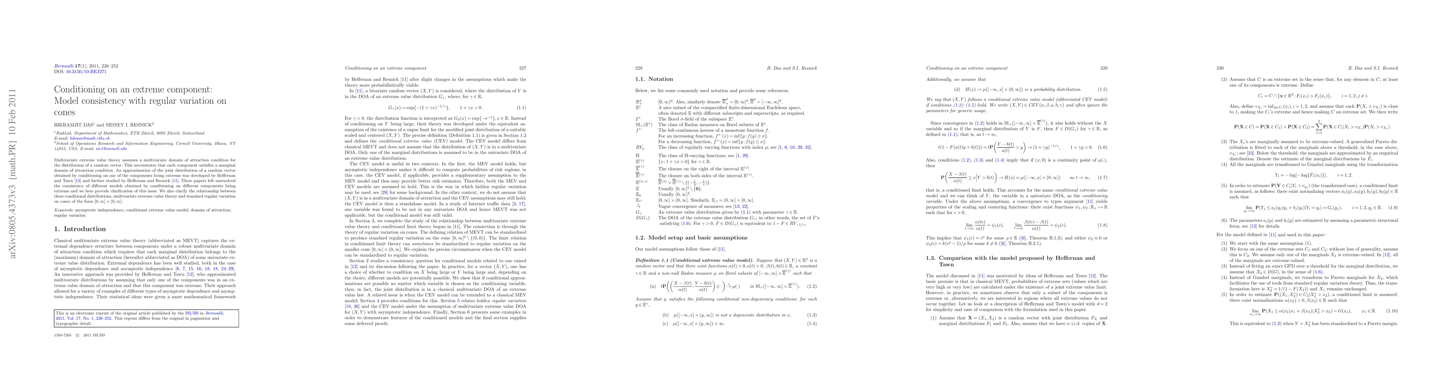 This paper addresses the consistency of different models in multivariate extreme value theory obtained by conditioning on extreme values of different components, clarifying their relationships with standard regular variation and the multivariate domain of attraction condition.