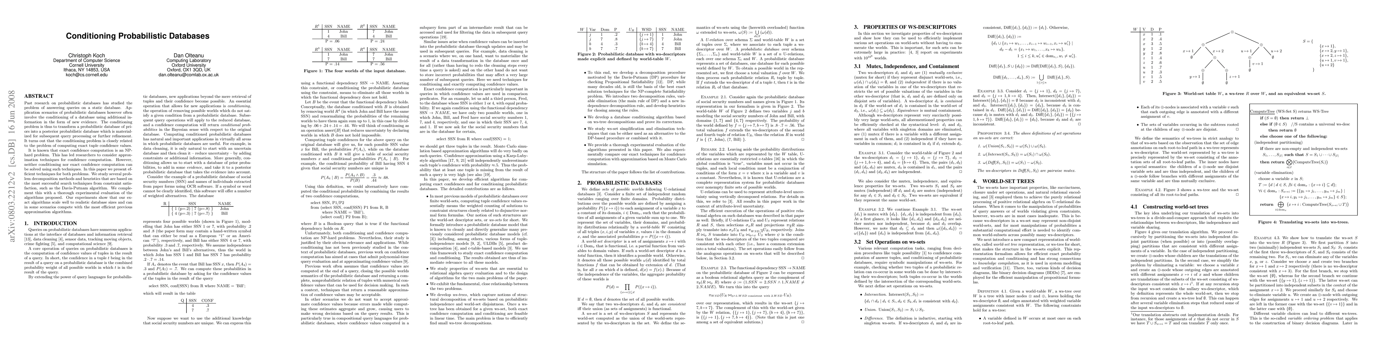 This paper presents efficient techniques for conditioning probabilistic databases and computing exact tuple confidence values, addressing the NP-hard nature of these problems. The authors propose decomposition methods and heuristics based on constraint satisfaction techniques, demonstrating through experiments that their exact algorithms scale well and can compete with previous approximation methods.