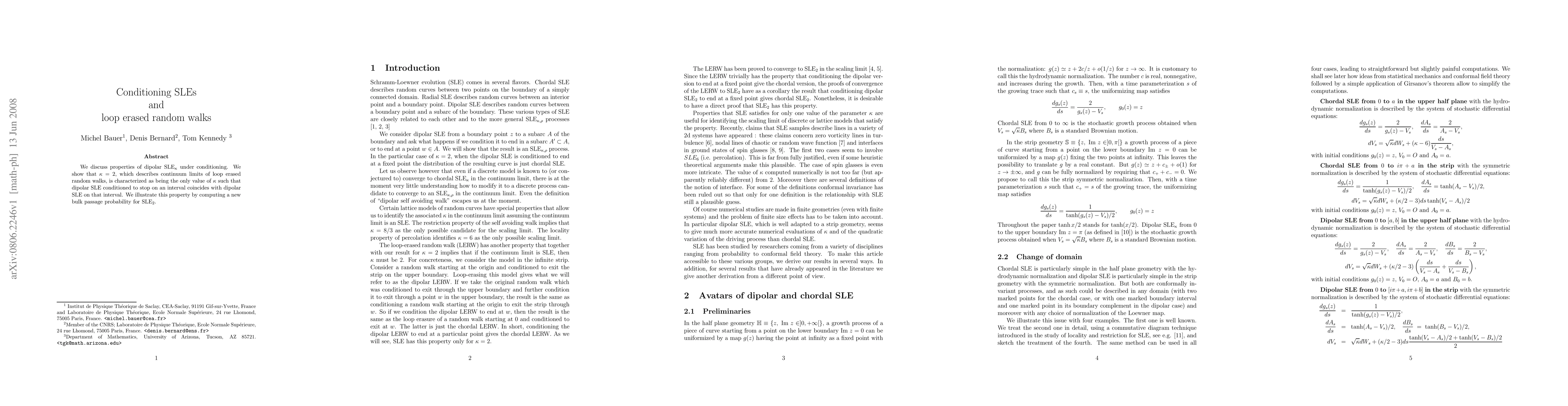 The paper presents a detailed analysis of conditioning SLEs and loop-erased random walks, providing new insights into the properties of dipolar SLEs and their relationship to chordal SLEs.
