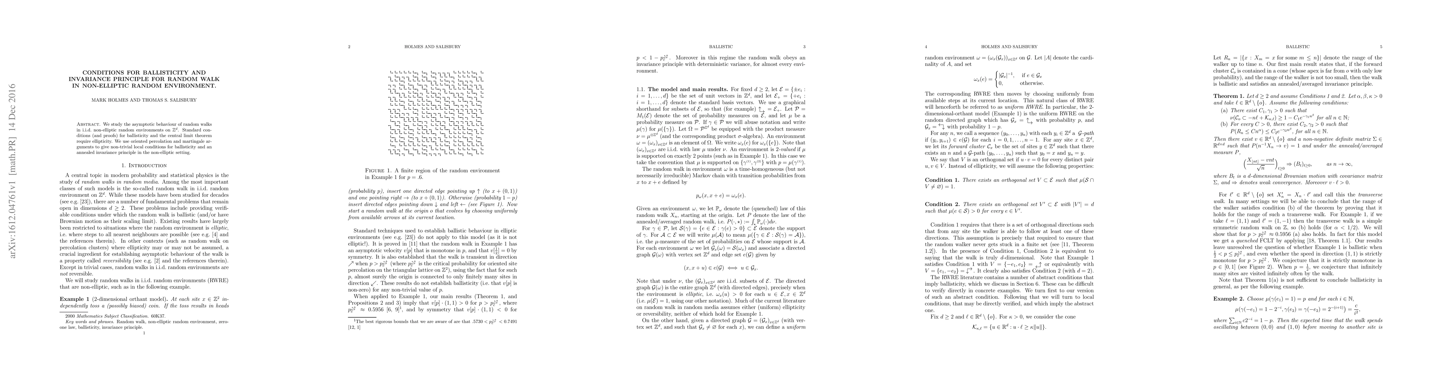 This paper investigates the asymptotic behavior of random walks in i.i.d. non-elliptic random environments, providing new conditions for ballisticity and an annealed invariance principle using oriented percolation and martingale techniques. Traditional methods rely on ellipticity, which this study extends beyond.