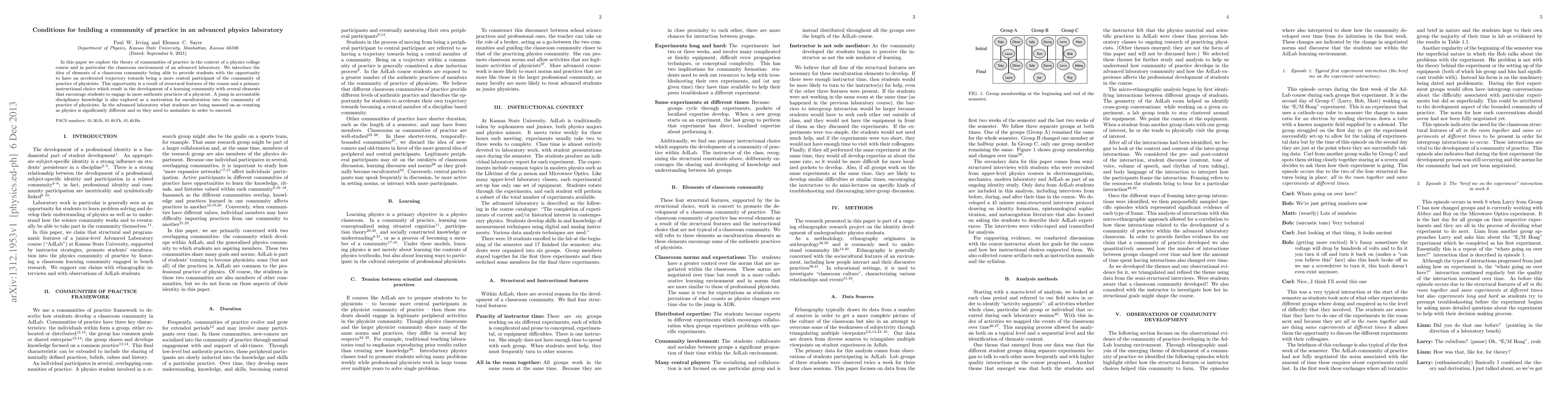 This paper explores how to create a community of practice in an advanced physics lab course, emphasizing structural features and instructional choices that facilitate students' engagement in authentic physicist practices and accelerate their integration into the physicist community. The study highlights the importance of accountable disciplinary knowledge and the need for students to adapt to the lab's unique assessment criteria.