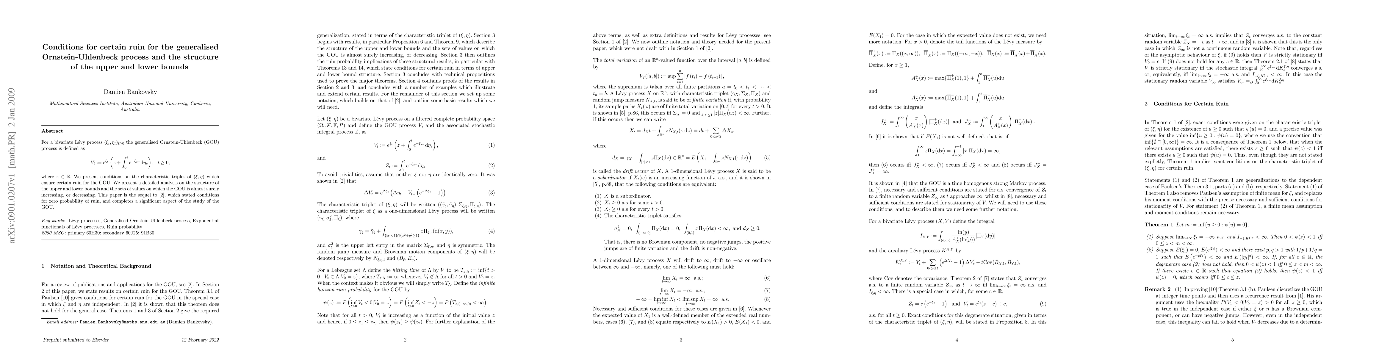 The research paper investigates conditions for certain ruin of the generalized Ornstein-Uhlenbeck process, focusing on its upper and lower bounds and almost sure behavior. It builds upon previous work to provide a comprehensive understanding of the GOU's properties.