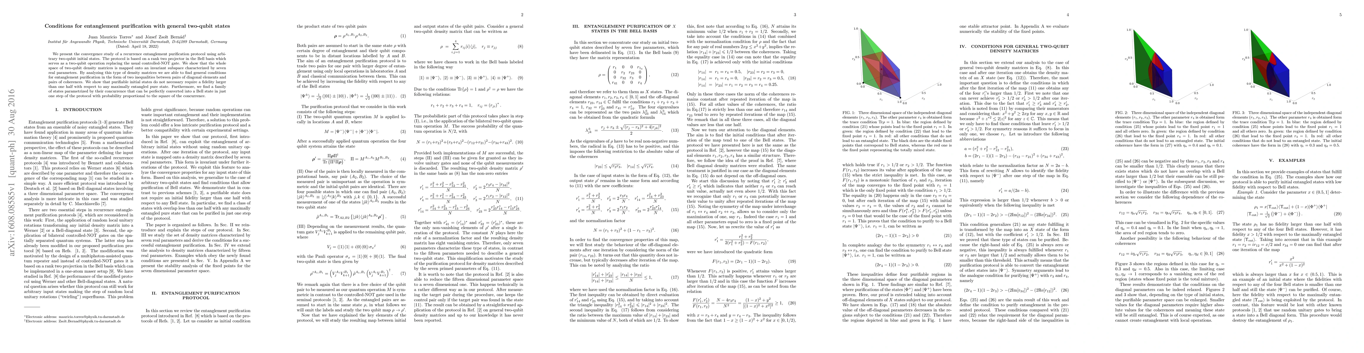 This paper investigates a recurrence entanglement purification protocol for general two-qubit states, demonstrating that it maps all two-qubit density matrices onto an invariant subspace. It establishes general conditions for purification in terms of inequalities involving diagonal elements and coherences, showing that initial states need not have a fidelity greater than 0.5 with maximally entangled states to be purifiable.
