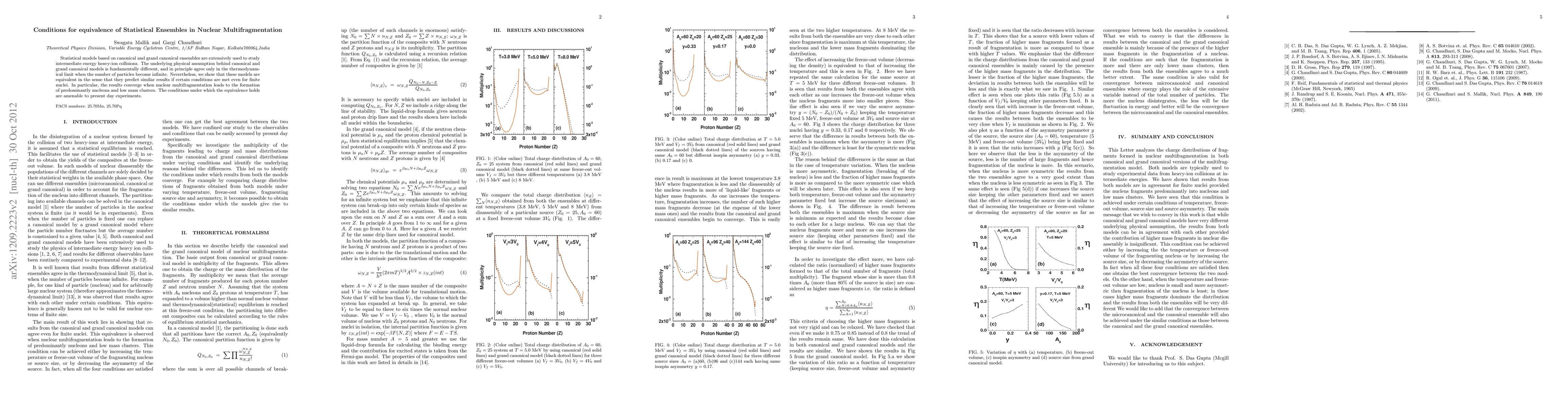 This paper demonstrates that statistical models based on canonical and grand canonical ensembles can predict similar results in nuclear multifragmentation, provided that the resulting fragments predominantly consist of nucleons and low mass clusters. The equivalence holds under specific conditions that are testable in current experimental settings.