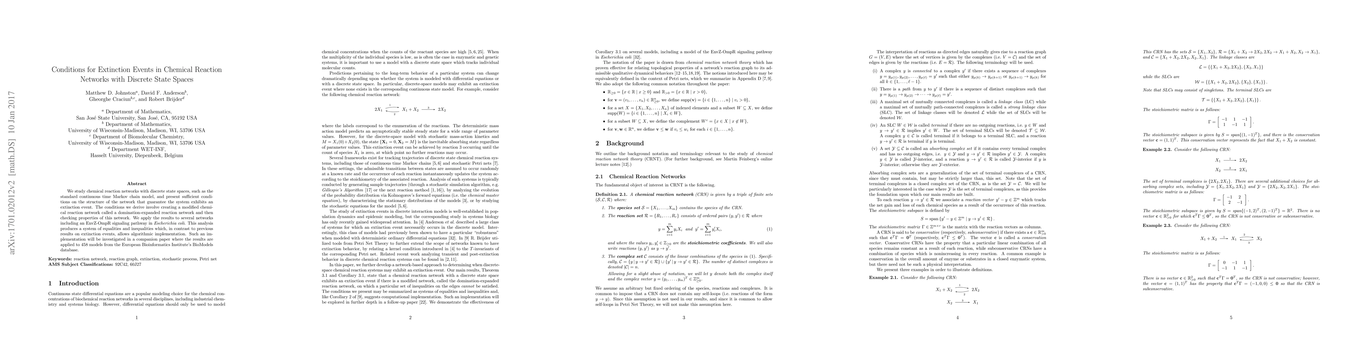 We study chemical reaction networks with discrete state spaces, such as the standard continuous time Markov chain model, and present sufficient conditions on the structure of the network that guarantee the system exhibits an extinction event. The conditions we derive involve creating a modified chemical reaction network called a domination-expanded reaction network and then checking properties of this network. We apply the results to several networks including an EnvZ-OmpR signaling pathway in Escherichia coli. This analysis produces a system of equalities and inequalities which, in contrast to previous results on extinction events, allows algorithmic implementation. Such an implementation will be investigated in a companion paper where the results are applied to 458 models from the European Bioinformatics Institute's BioModels database.