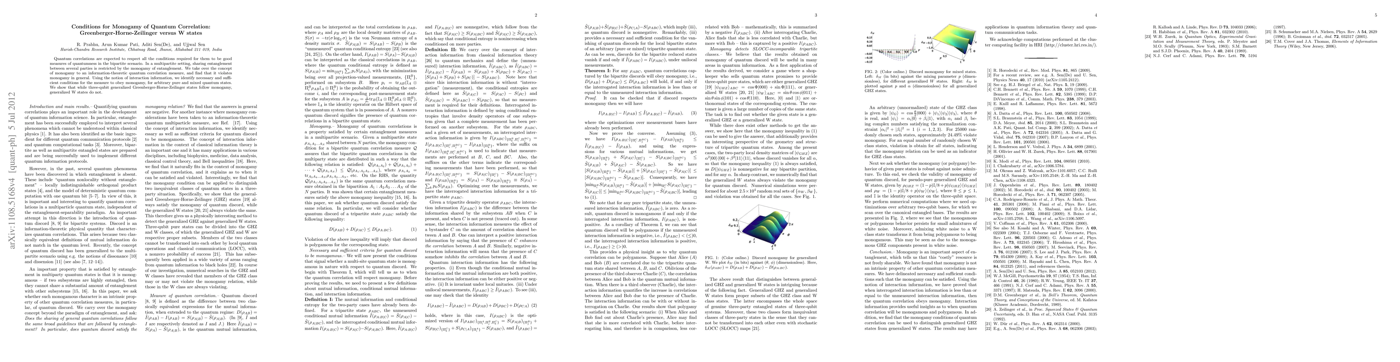 The research identifies conditions for the monogamy of quantum discord, demonstrating that it generally violates monogamy. It establishes necessary and sufficient conditions for quantum discord to obey monogamy across pure and mixed states, showing that while generalized Greenberger-Horne-Zeilinger states adhere to this principle, generalized W states do not.