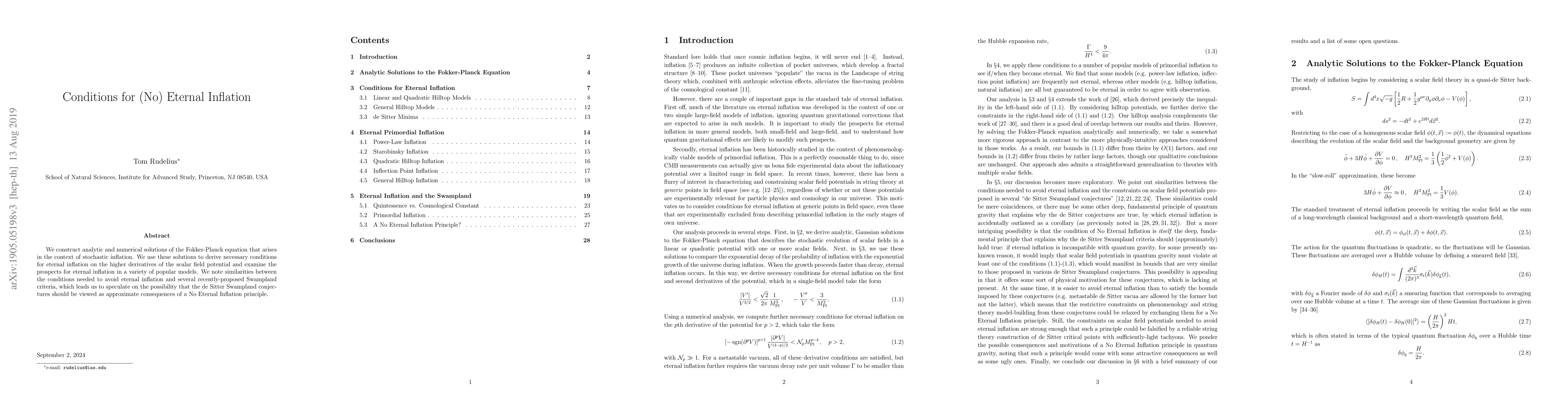 We construct analytic and numerical solutions of the Fokker-Planck equation that arises in the context of stochastic inflation. We use these solutions to derive necessary conditions for eternal inflation on the higher derivatives of the scalar field potential and examine the prospects for eternal inflation in a variety of popular models. We note similarities between the conditions needed to avoid eternal inflation and several recently-proposed Swampland criteria, which leads us to speculate on the possibility that the de Sitter Swampland conjectures should be viewed as approximate consequences of a No Eternal Inflation principle.