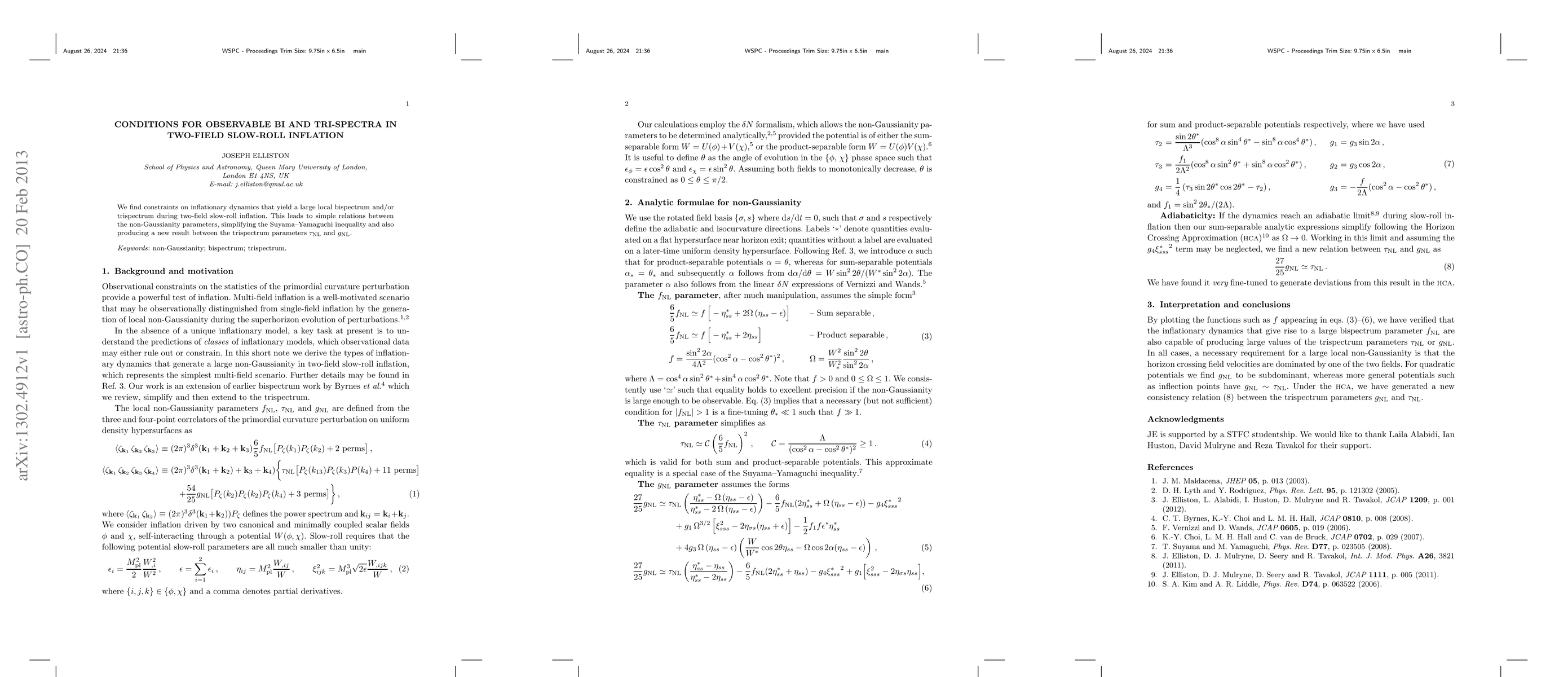 We find constraints on inflationary dynamics that yield a large local bispectrum and/or trispectrum during two-field slow-roll inflation. This leads to simple relations between the non-Gaussianity parameters, simplifying the Suyama-Yamaguchi inequality and also producing a new result between the trispectrum parameters tNL and gNL.